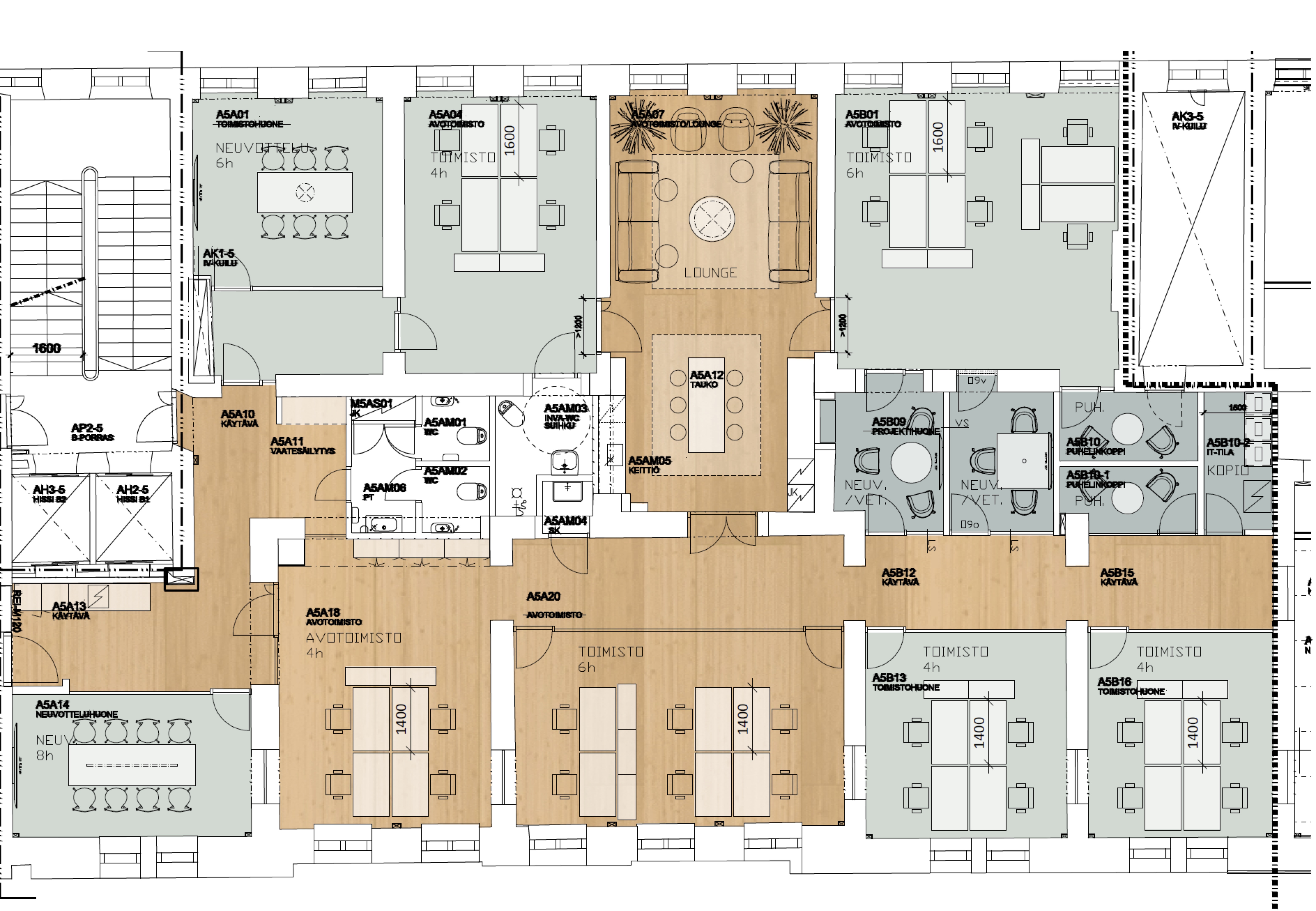 Näyttävä 361 m² toimisto vuonna 1892 rakennetun arvokiinteistön neljännessä kerroksessa.