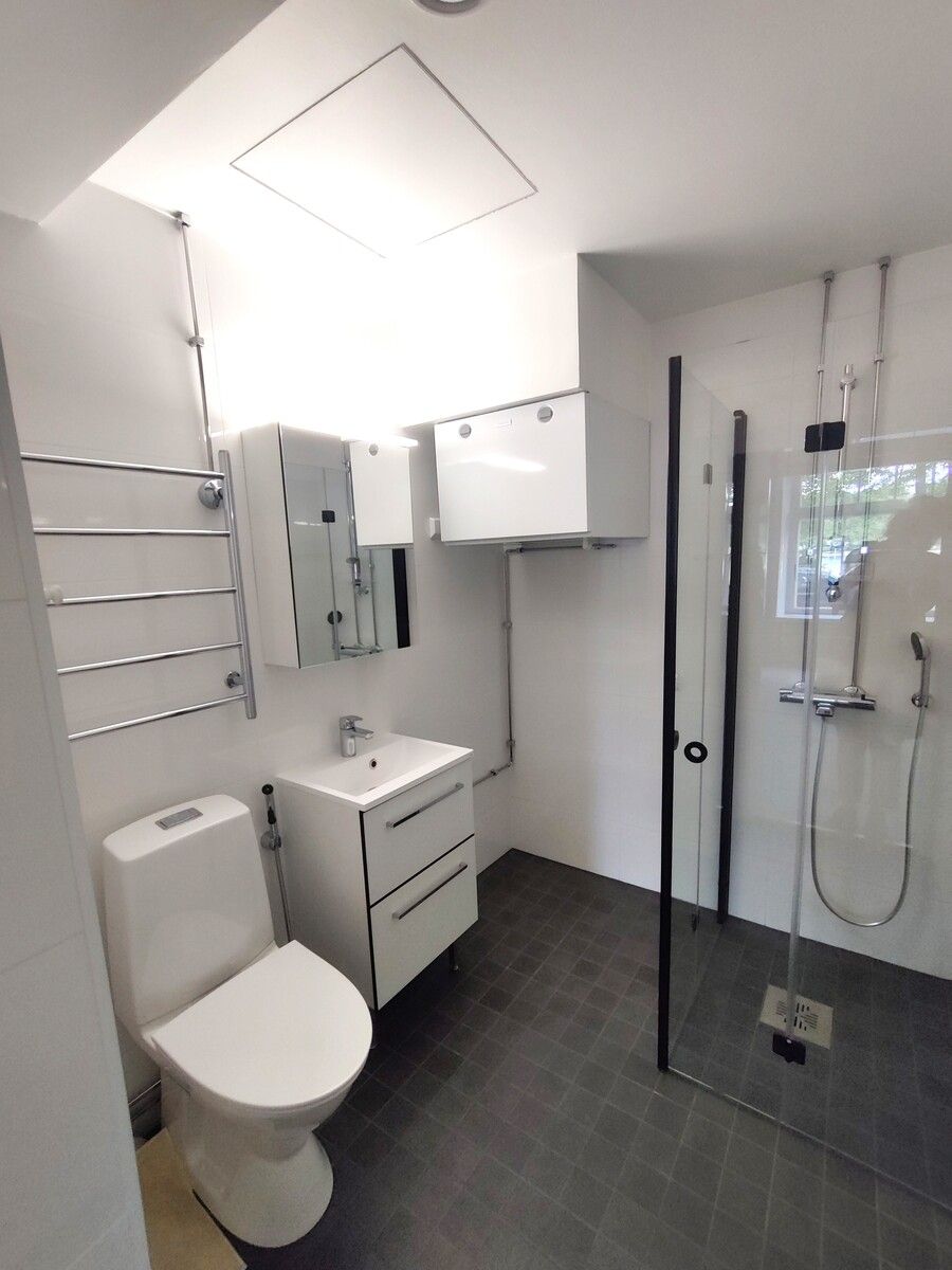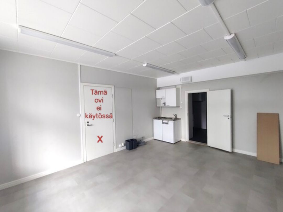 Etutilassa on iso ikkuna kadulle. Tilassa on minikeittiö ja putkisaneerauksen yhteydessä rakennettu kph, jossa myös suihku.
