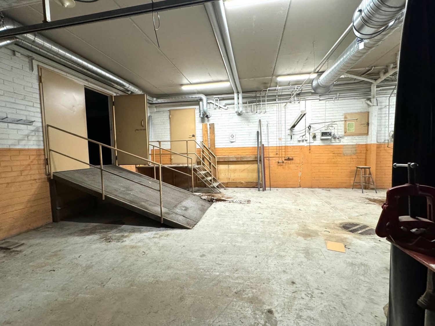 -Kellarikerroksen n. 407 m2 tila on korkeampaa tuotanto-/verstas-/varastointitilaa. Lisäksi siellä on matalampia varastointitiloja sekä väestönsuoja. Kellarikerrokseen pääsee ajoluiskaa pitkin Messukylän kirkon puolelta.