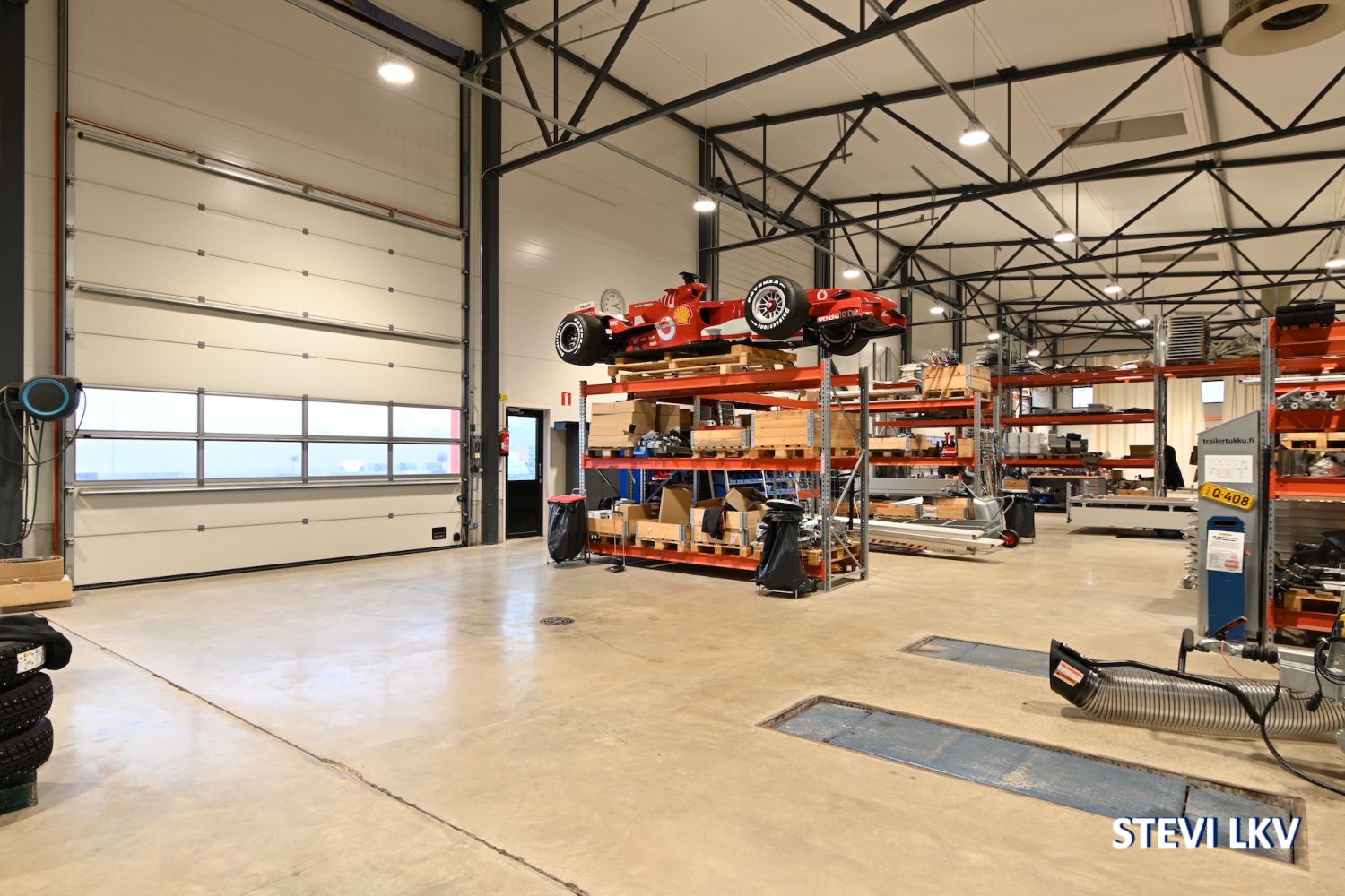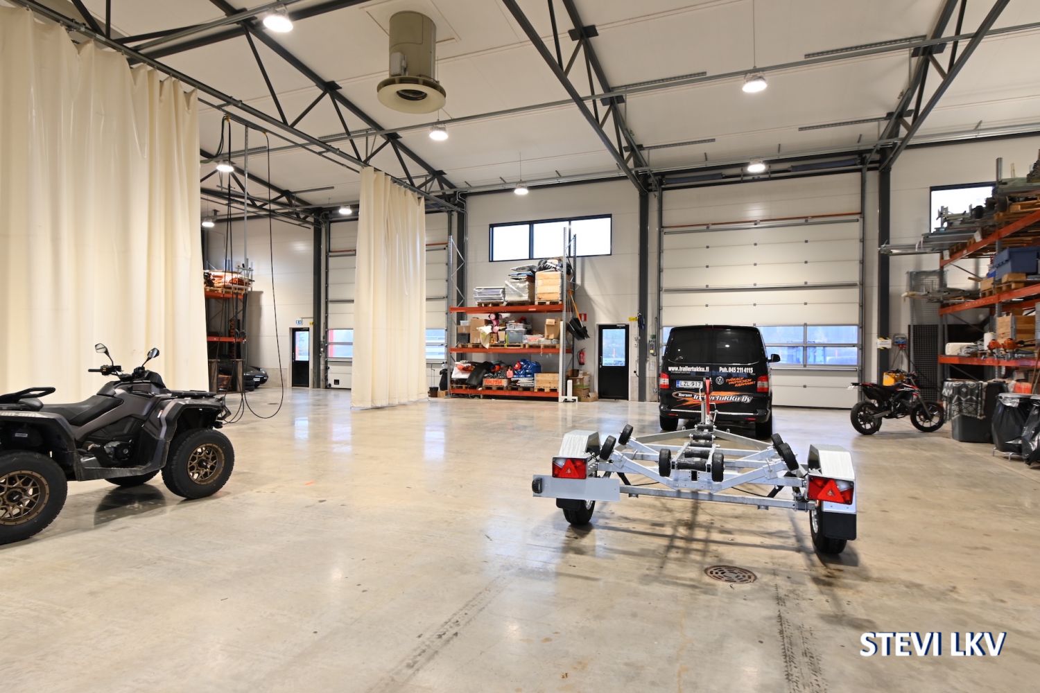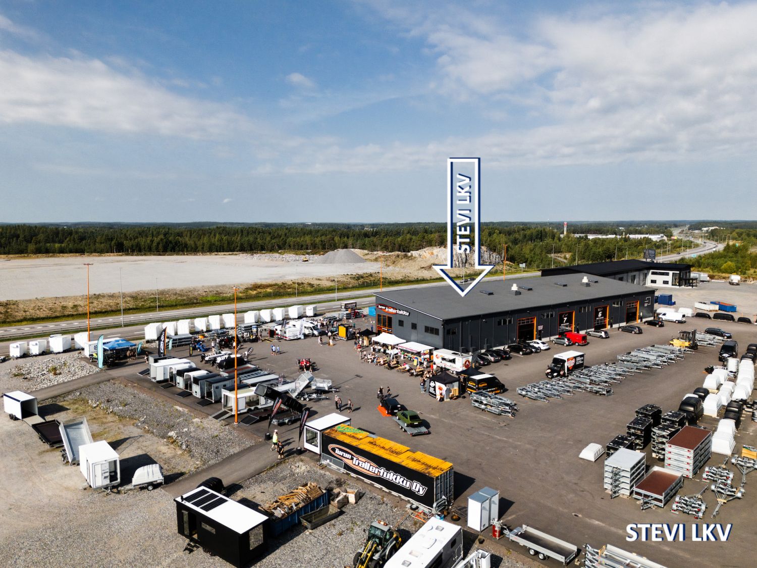 Tilava halli, myymälä, toimistotilat ja sosiaalitilat muodostavat yhteensä 1402 neliömetriä, ja suuri, asfaltoitu piha-alue tarjoaa runsaasti pysäköintitilaa. Aidattu & valaistu piha sähköportteineen lisää turvallisuutta ja käytännöllisyyttä. Kameravalvonta.