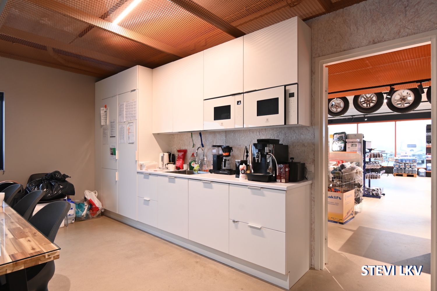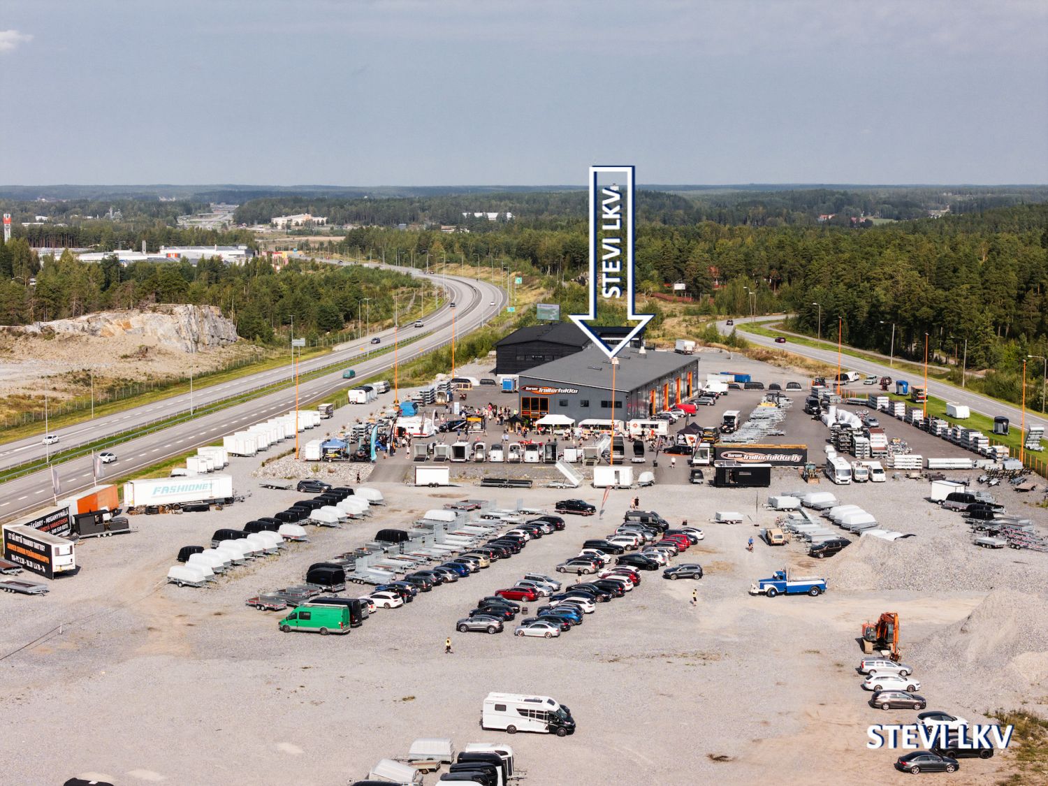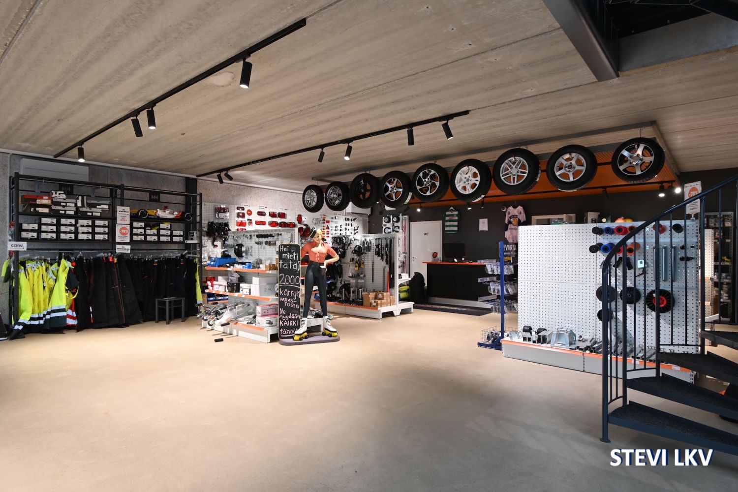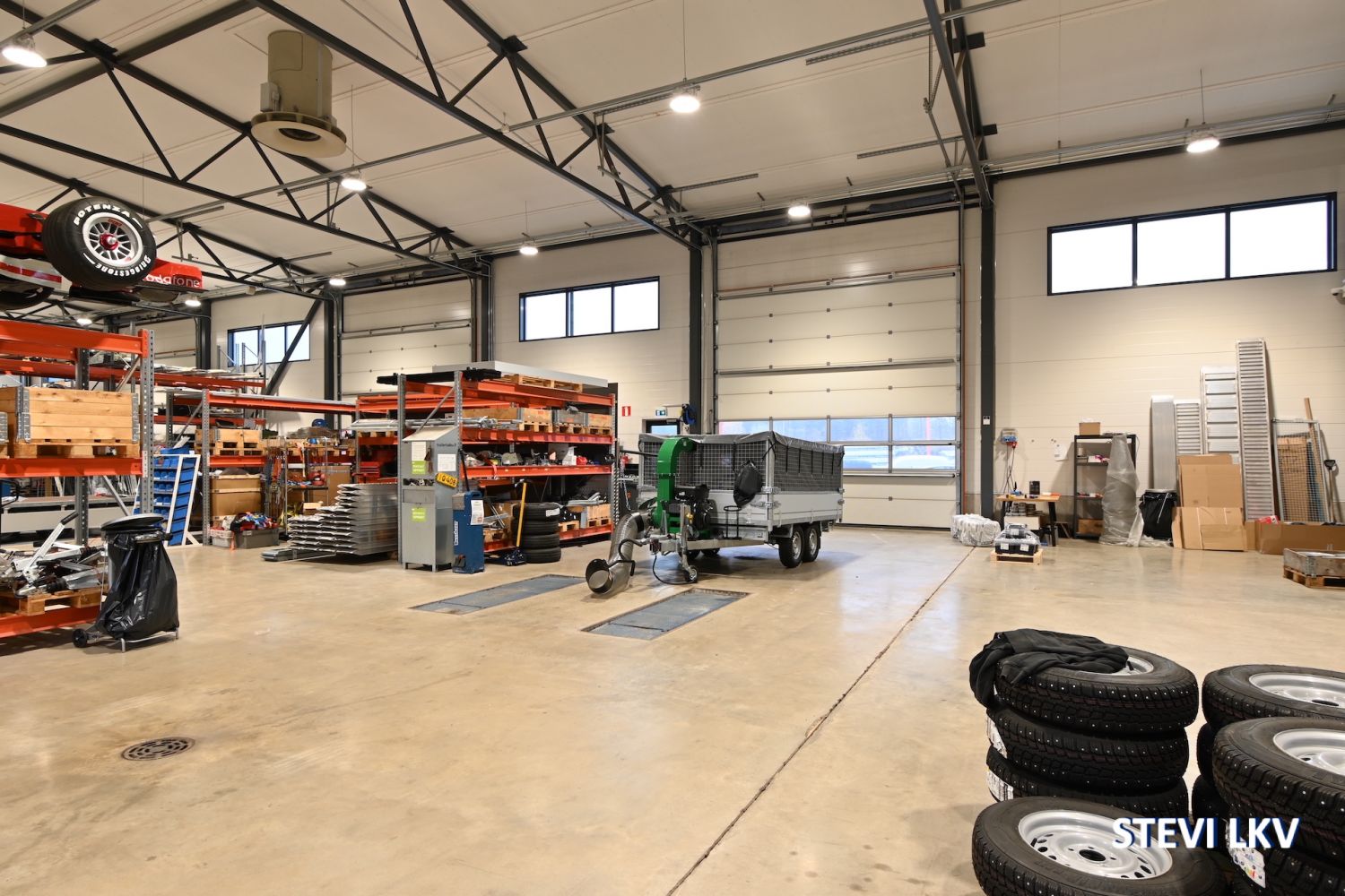 Tilava halli, myymälä, toimistotilat ja sosiaalitilat muodostavat yhteensä 1402 neliömetriä, ja suuri, asfaltoitu piha-alue tarjoaa runsaasti pysäköintitilaa. Aidattu & valaistu piha sähköportteineen lisää turvallisuutta ja käytännöllisyyttä. Kameravalvonta.