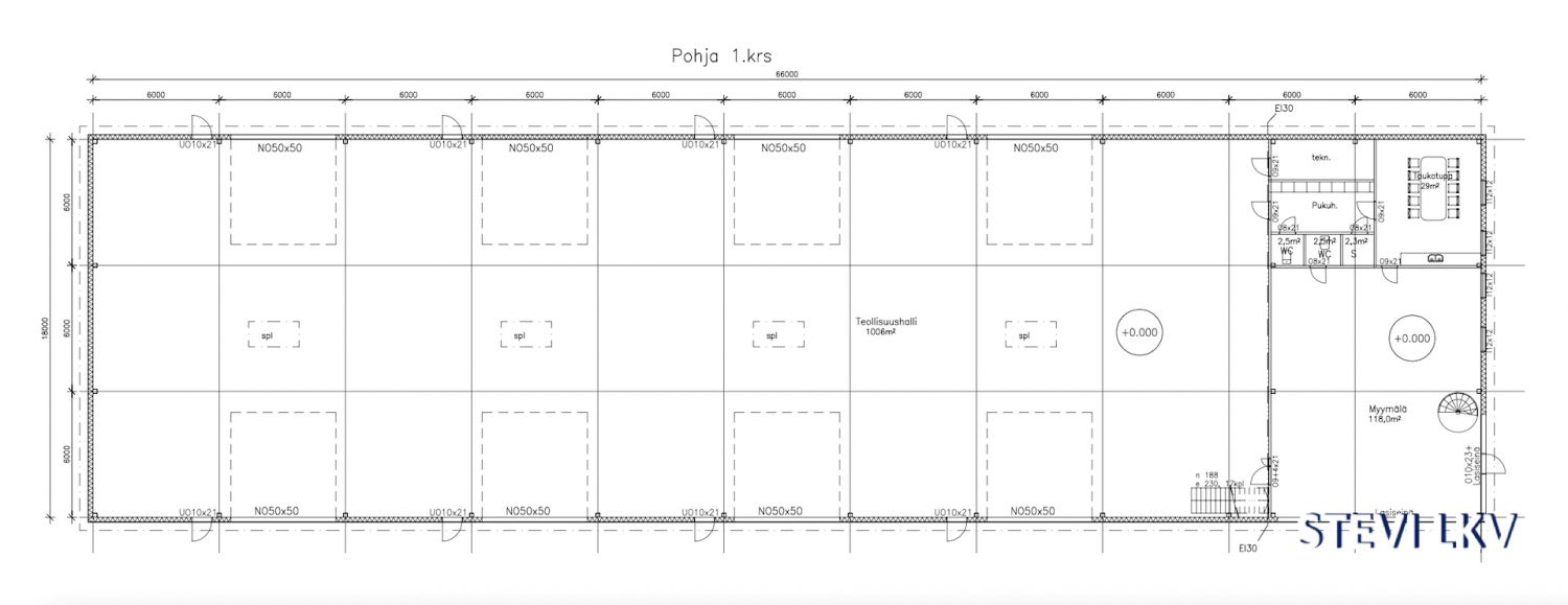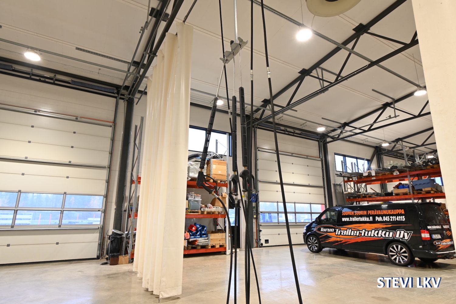 Kaikki nosto-ovet (korkeus 5 metriä ja leveys 5 metriä) ovat sähköiset, nosto-ovia on 8 kappaletta ja halli on 4:stä kohtaa läpiajettava.