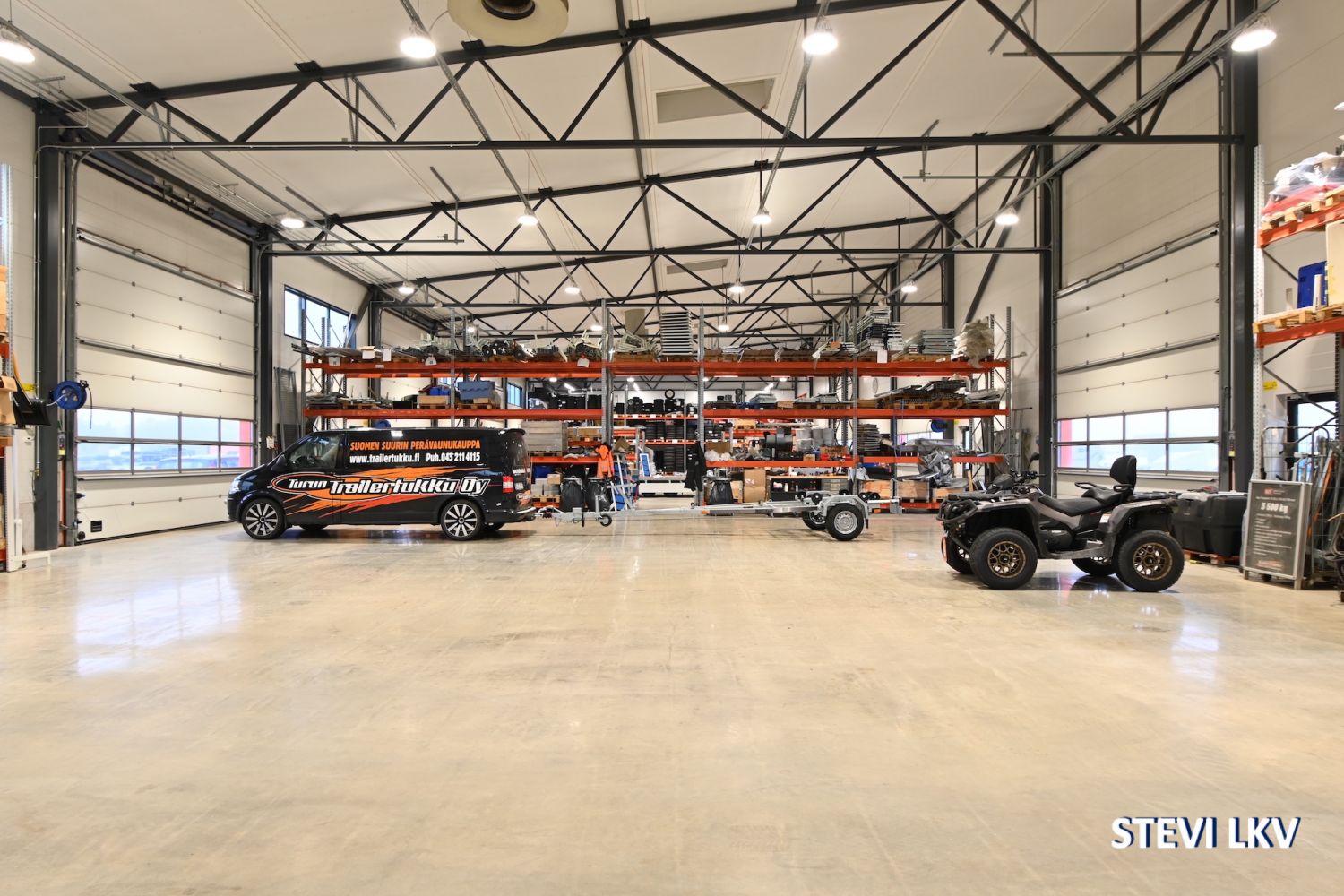Sopimuksen mukaan. Nykyinen toimija (Turun Trailertukku Oy) voi jäädä osaan halliin vuokralle ja heti saa osan hallista omaan käyttöön. Tai sitten koko hallin saa omaan käyttöön (kerro millainen tila terve on).