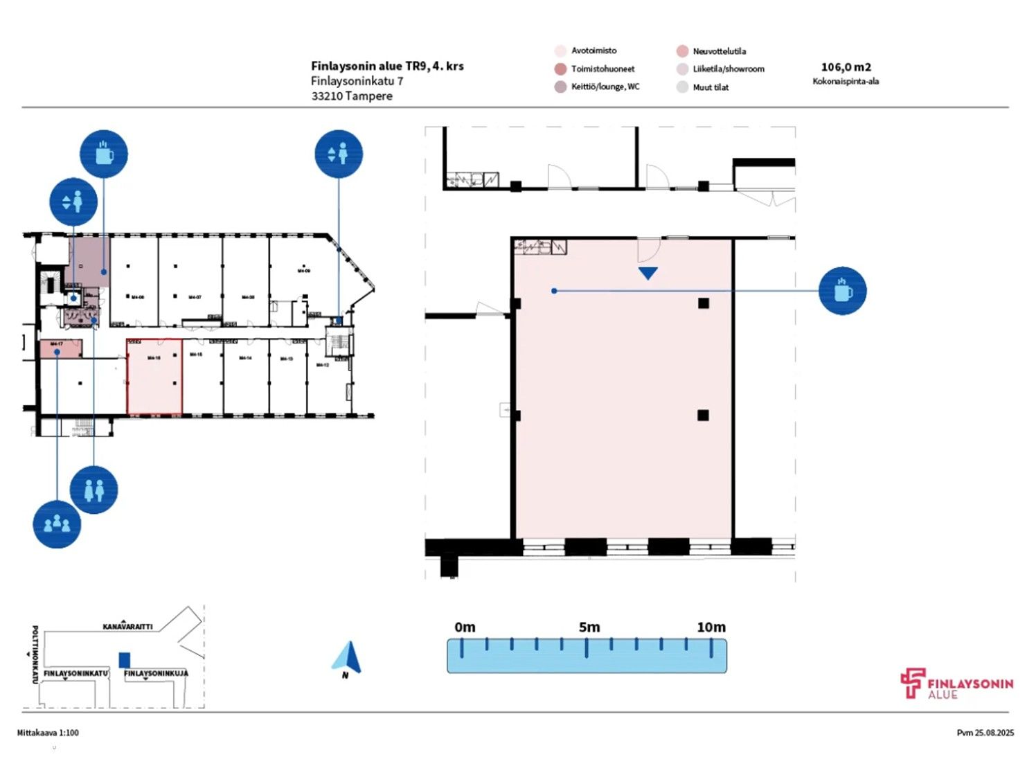 Vuokrataan noin 106 m2 jäähdytettyä toimistotilaa Finlaysonin alueelta.