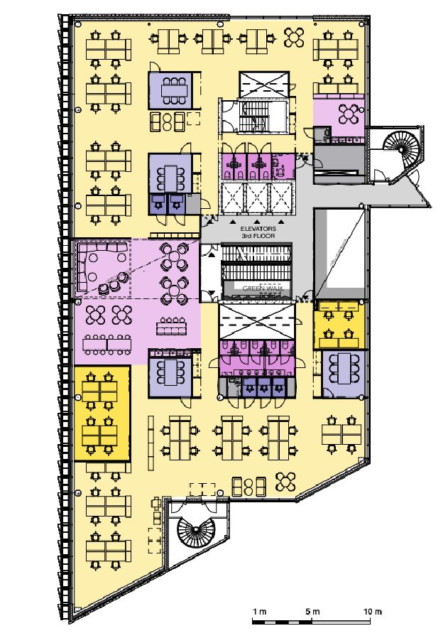 Vuokrattavana koko 3. kerroksen tasokasta, modernia toimistotilaa. Tästä monitilatyöympäristöstä avautuu ikkunat neljään suuntaan.