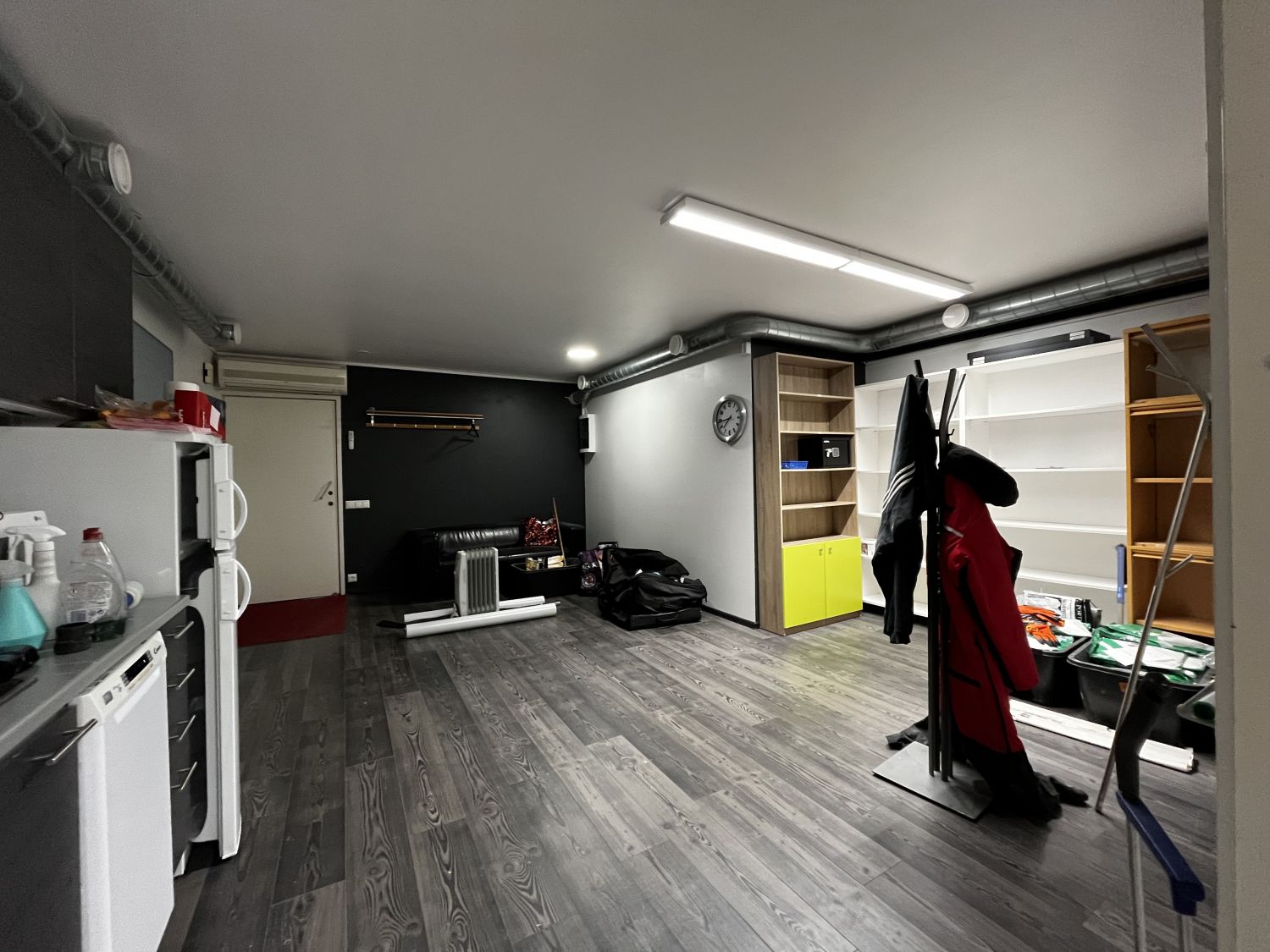 Yhteensä n. 172m2 toimitila, joka jakautuu yhteensä n. 56m2 toimisto- ja neuvottelutiloihin (sis. keittiötilat), sauna- ja wc tiloihin (2kpl) sekä sisäänajettavaan korkeaan varastotilaan, johon rakennettu teräsrakenteinen varastohylly. Toimiston puolelle lisäksi oma sisäänkäynti yhteisestä rapusta. Tilassa hyvät puitteet ja toimintamahdollisuudet pk-yritykselle. Pysäköintitilaa hallin kokoon nähden mukavasti.