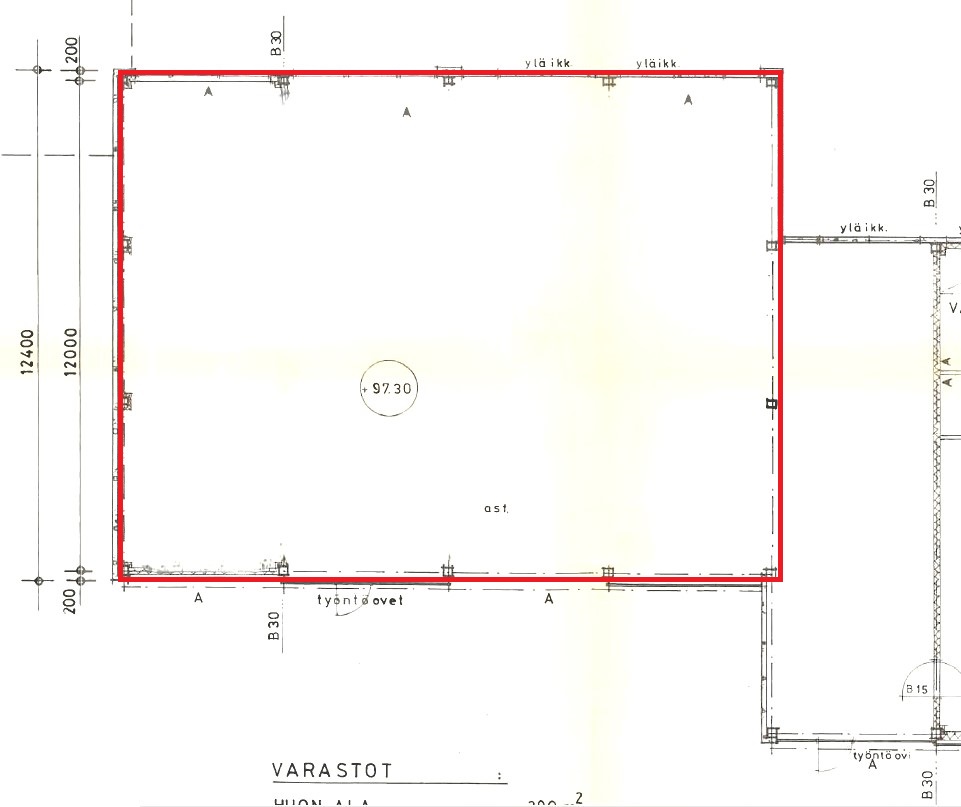 Vuokrattavana noin 190 m2 kylmä varasto. Vapaa korkeus noin 3,9 metriä. 4 kpl työntöovia, yksi käyntiovi. Tilassa voimavirtamahdollisuus. Tilassa olevat trukkihyllyt mahdollista jättää tilaan.