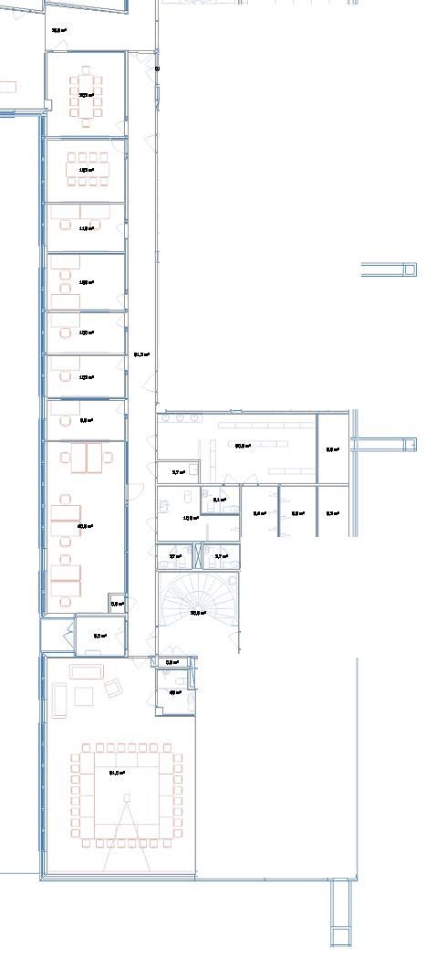 Tilat muodostuvat käytävästä, jonka varrella on useita toimistohuoneita. Huoneita voidaan joustavasti yhdistellä suuremmiksi kokonaisuuksiksi, kuten neuvotteluhuoneiksi tai keittiötiloiksi, tarpeiden mukaan. Äänenhallintaan on panostettu huolellisesti äänieristyksellä ja kaiunvaimennuksella, mikä takaa rauhallisen ja keskittymistä tukevan työympäristön. Lisäksi tiloissa on viilennys, joka varmistaa miellyttävän työilmapiirin ympäri vuoden.