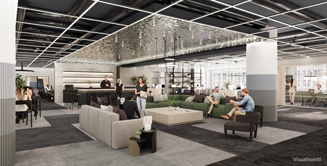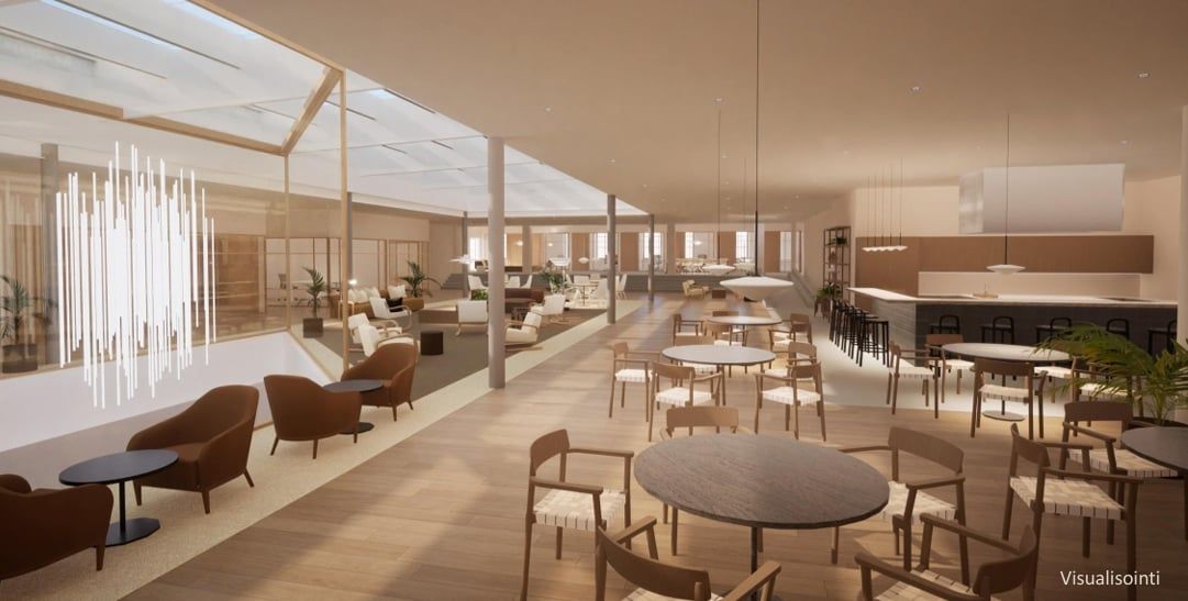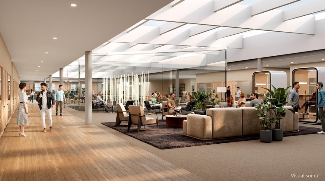 Tila koostuu osin valmiista ja osin täysin uudistettavasta alueesta – pohjaratkaisut ja tilajako voidaan suunnitella joustavasti tukemaan juuri teidän työskentelytapojanne. Kokonaisuus on myös helposti jaettavissa esimerkiksi asiakas- ja henkilöstötiloihin omilla kulkureiteillään.