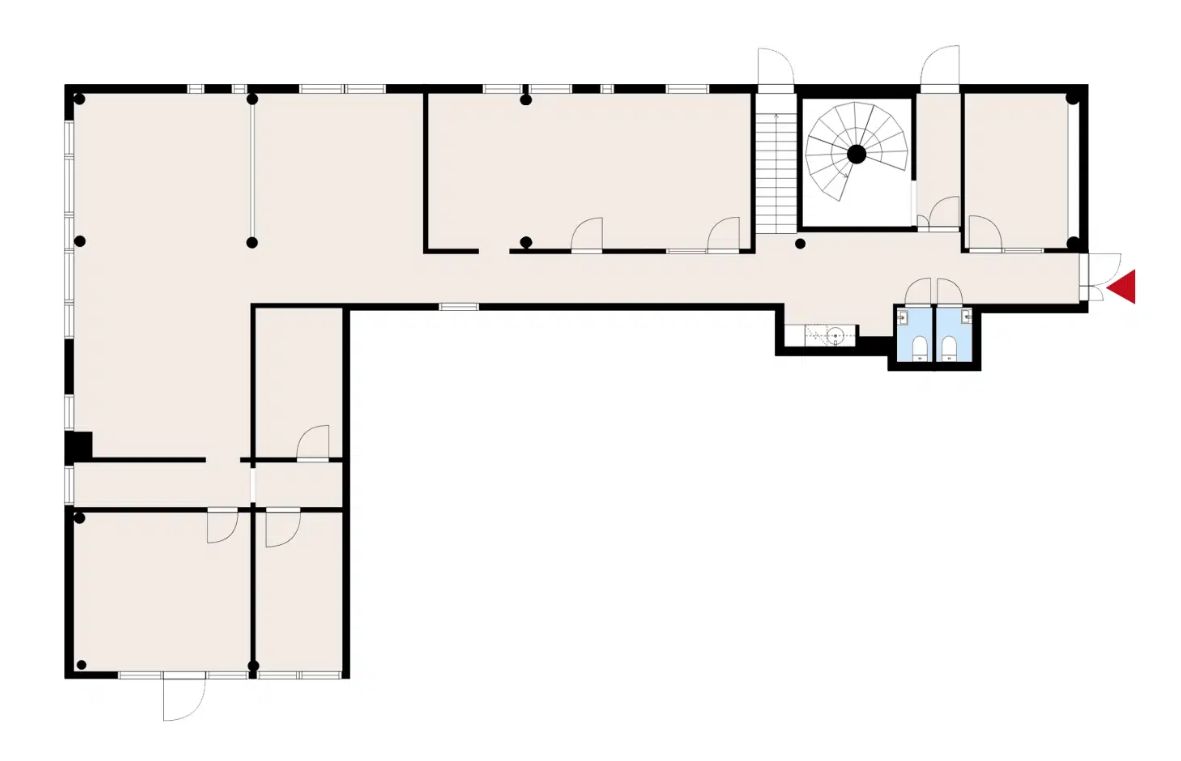 Vuokrattavana 1. kerroksen valoisaa ja korkeaa avotilatoimistotilaa. Toimistossa on avotila, useita erillisiä huoneita ja oma keittiö sekä wc-tilat.