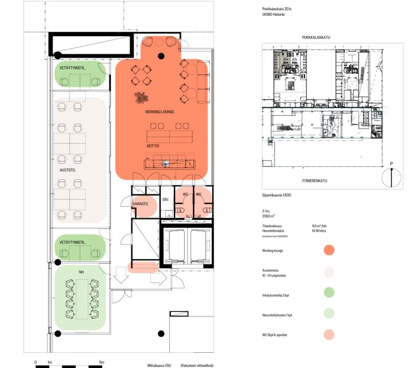 Huipputehokas 2. kerroksen 208,5 m² toimisto loistavalla sijainnilla Ruoholahden palveluiden äärellä.