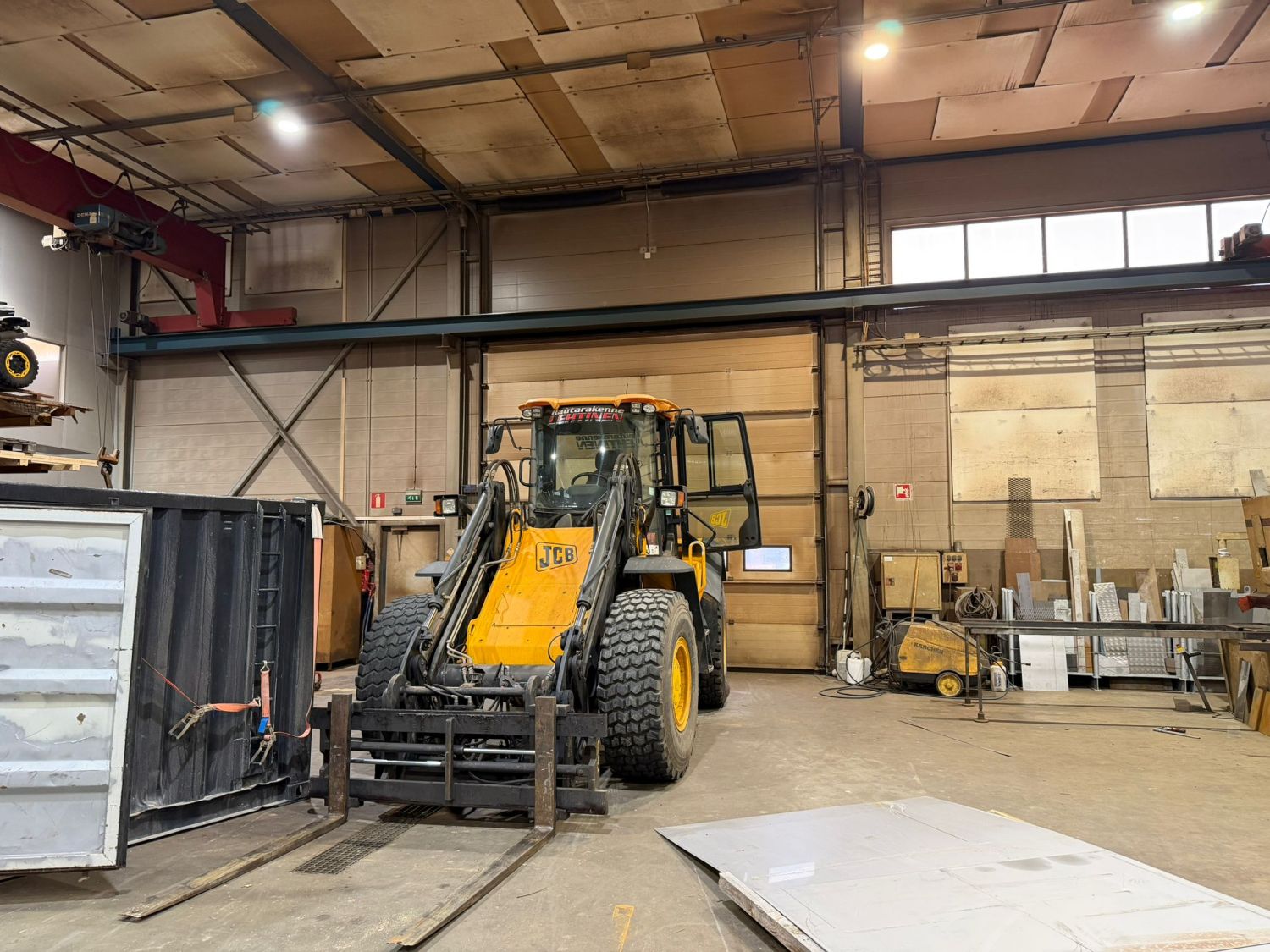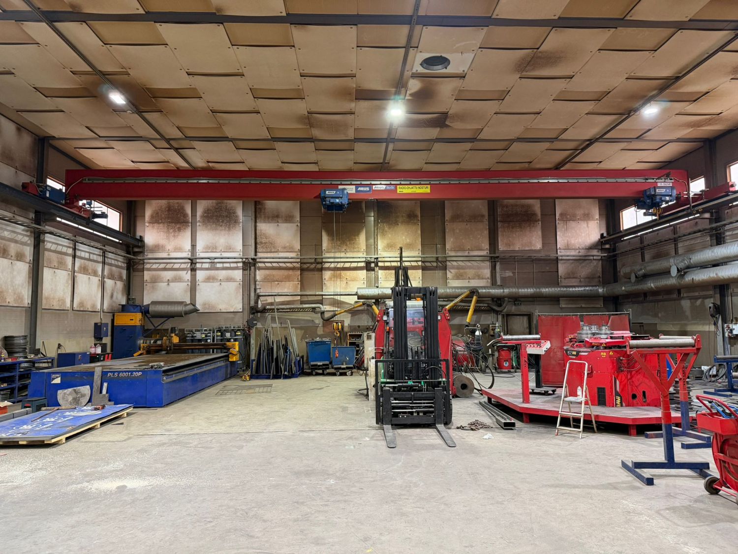 Korkea tuotantorakennus siltanostureilla ja isolla piha-alueella!