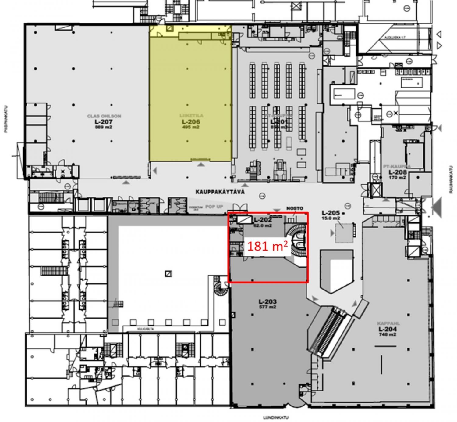 Vuokrataan Kauppakeskus Lundista toisen kerroksen 181 m² liiketila.