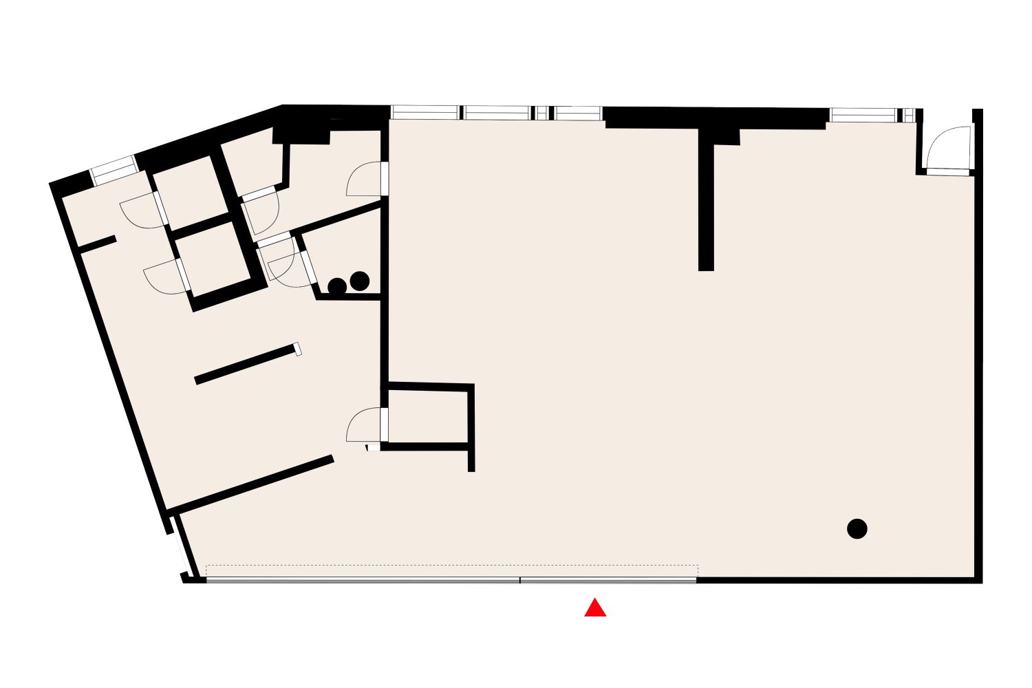 Vuokrattavana on toimitila 1.kerroksessa. 173,3 m²:n tilassa on aiemmin toiminut ravintola, mutta uudella yrittäjällä on oltava mahdollisuus sijoittaa keittiökoneisiin ja laitteisiin. Tila soveltuu myös toimistokäyttöön.