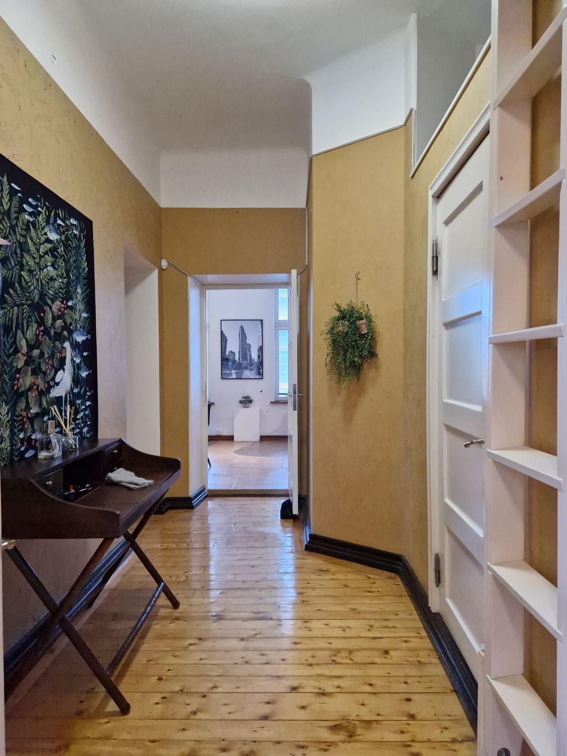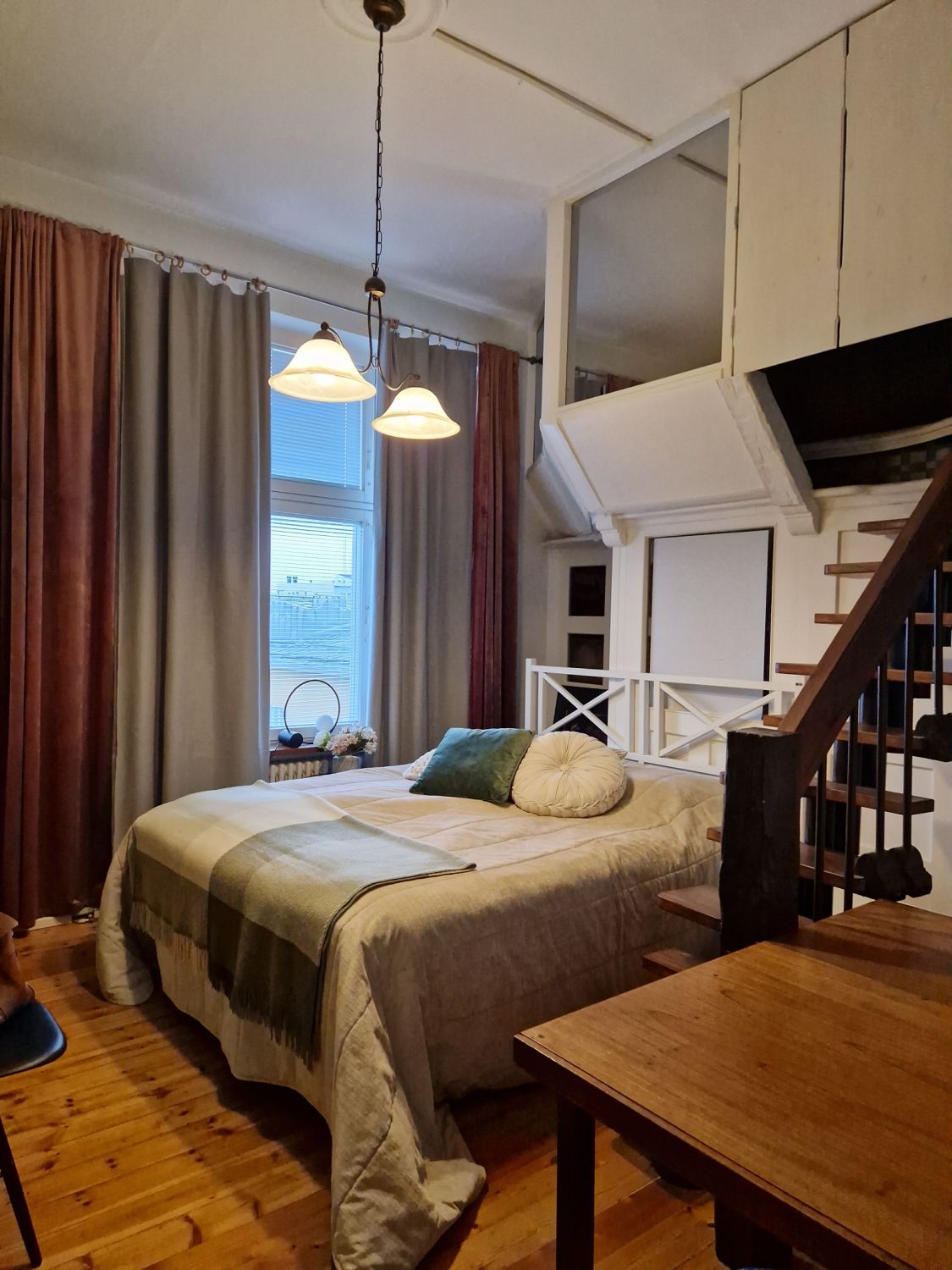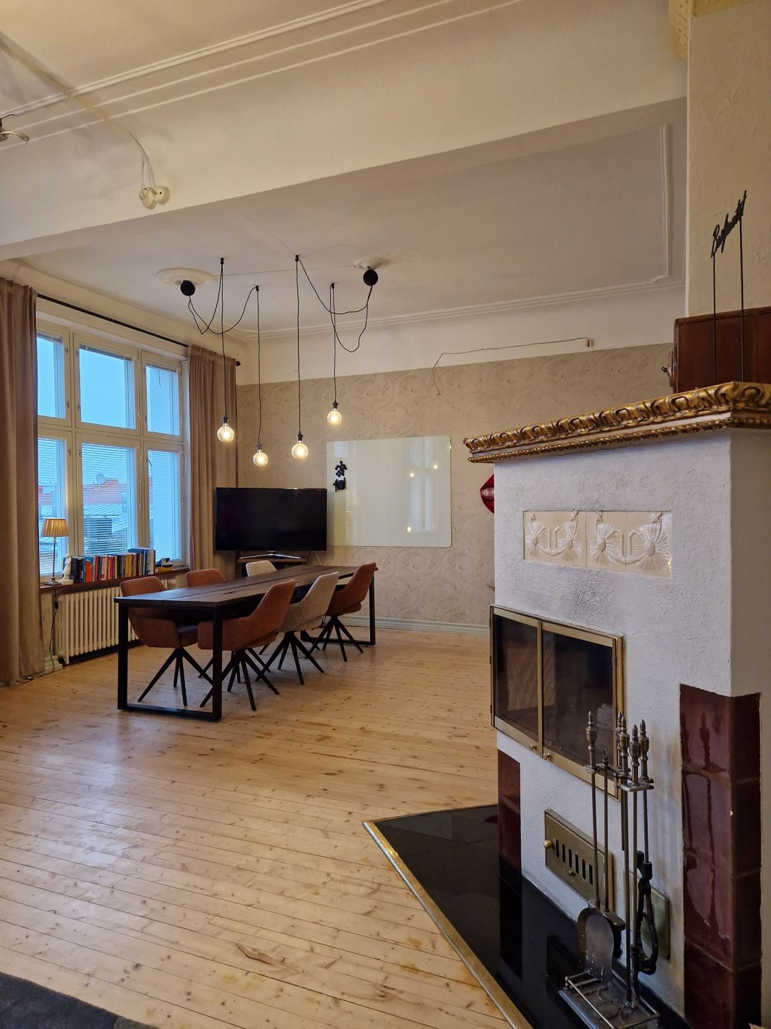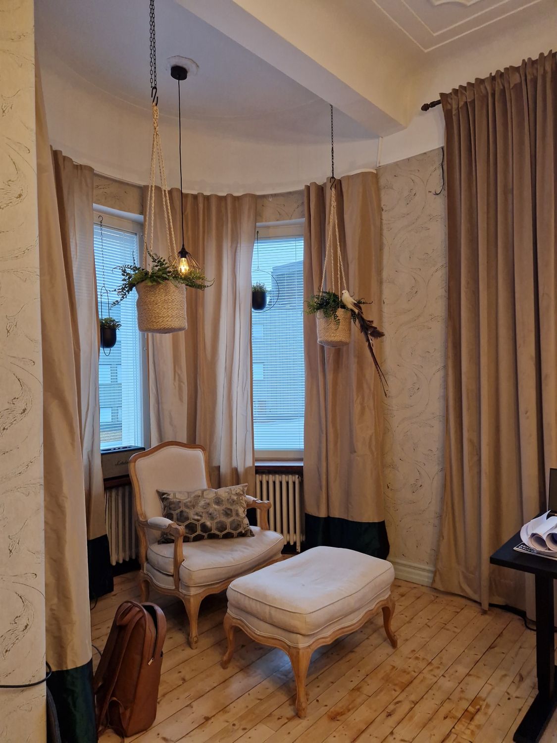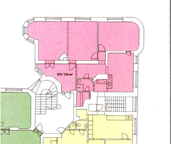 Rauhallinen pihanpuolen huoneisto, korkeat (3,3 m) huoneet, lattiat lakattua lautaa, seinät tapetoitu.