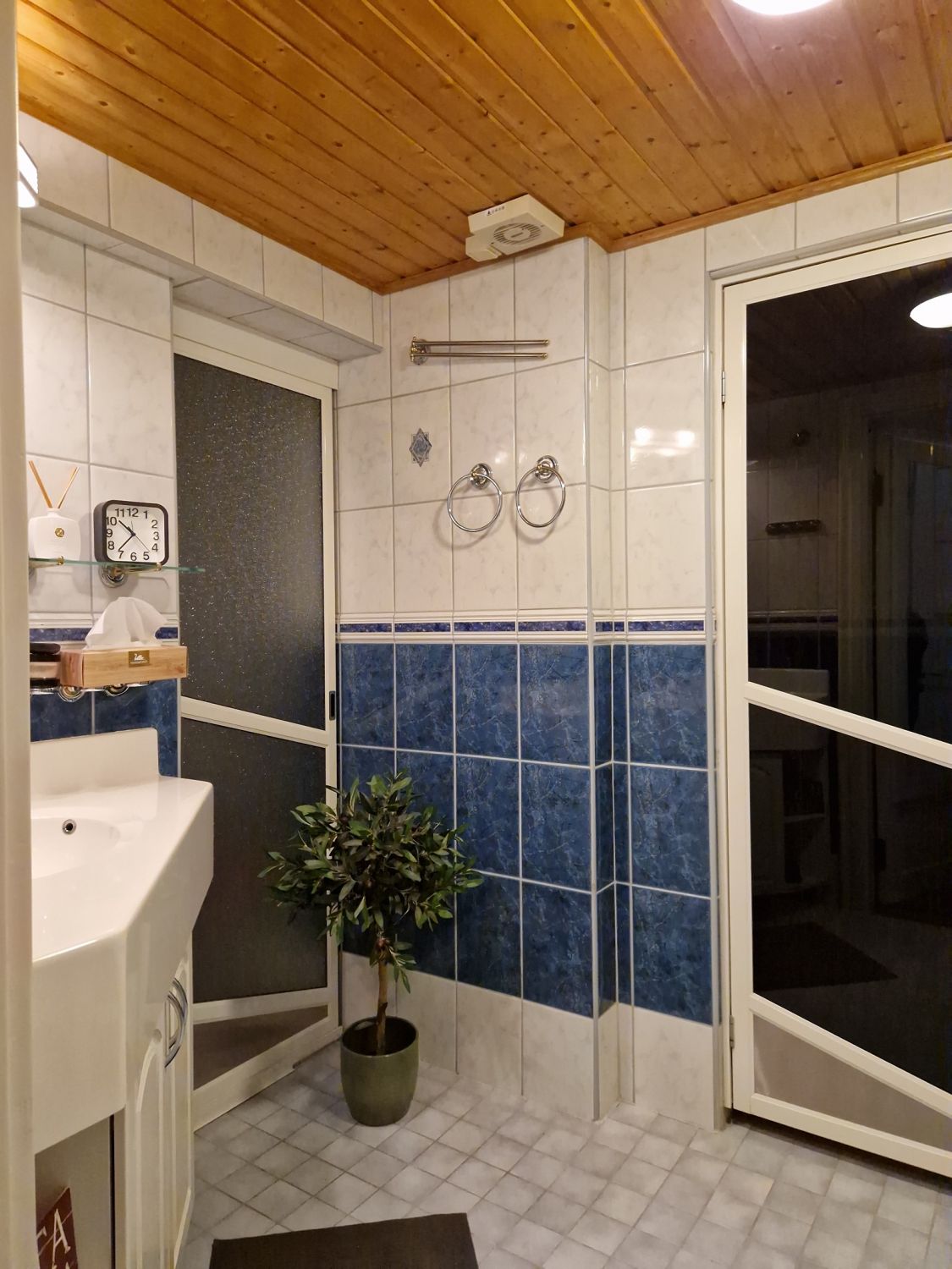 Huoneistossa on myös pesuhuone, sauna ja keittiötila.