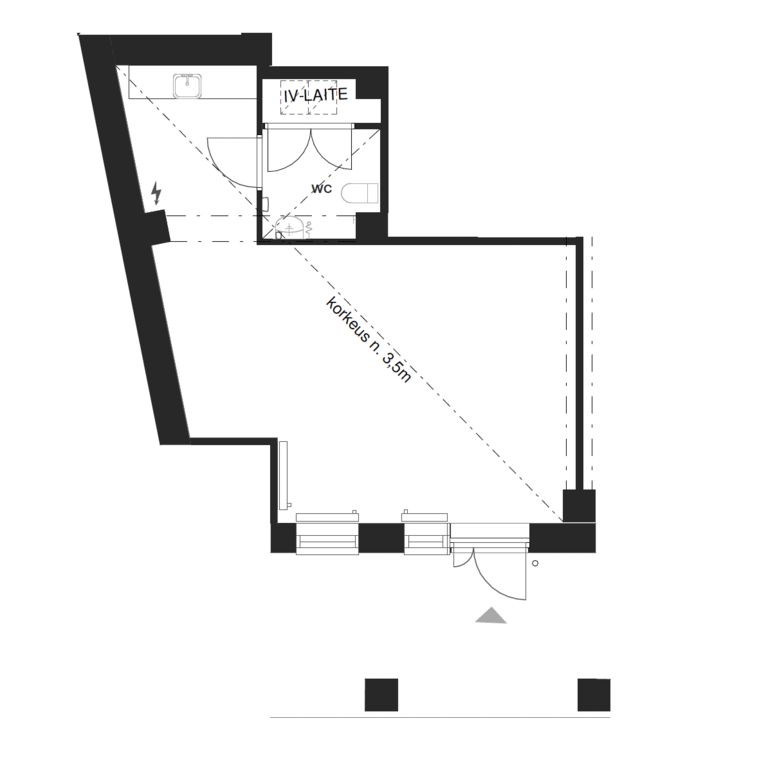 Tämä 46 m² sijaitsee kiinteistön katutasossa. Tilaan kuuluu oma wc-tila ja minikeittiö. Liiketila ei sovellu ravintolatoimintaan.