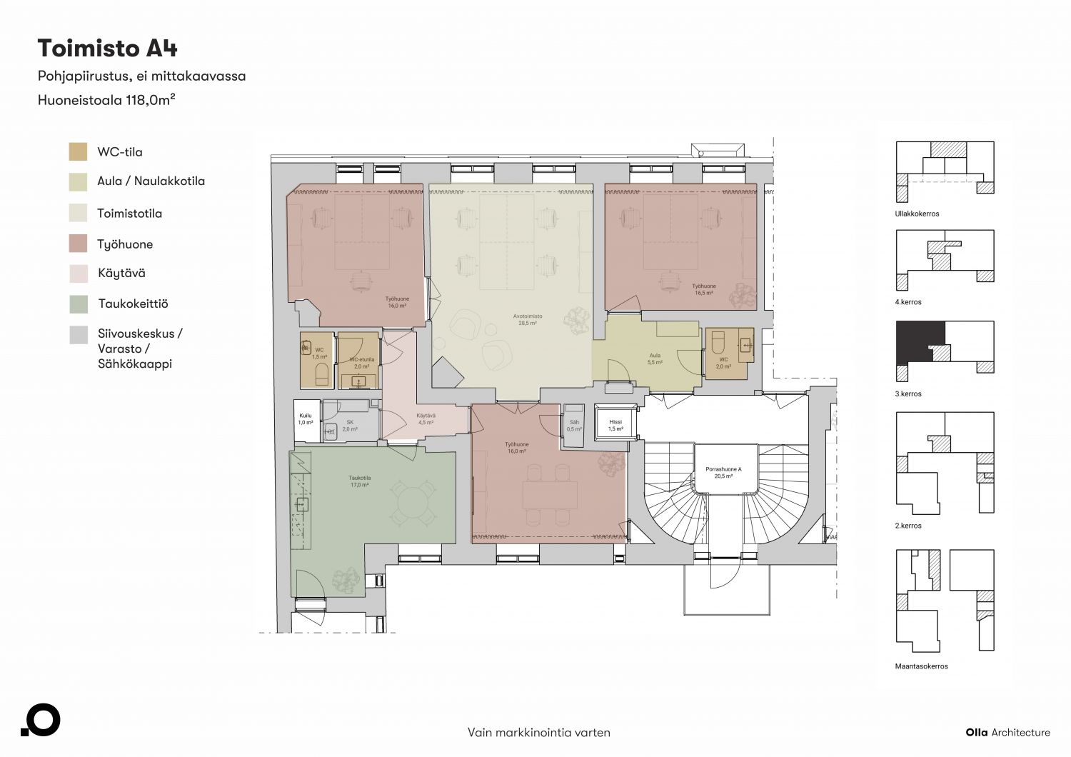 Tämä tila sopii yritykselle, joka arvostaa laadukasta, persoonallista ja tarinallista työympäristöä.