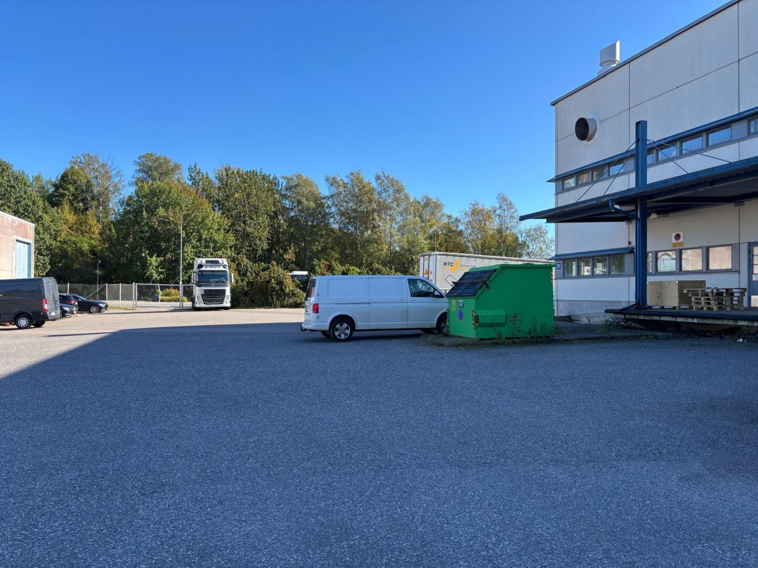 Tavaraliikenne tapahtuu kätevästi pitkän lastauslaiturin kautta pihan puolelta. Lastausalue soveltuu hyvin raskaalle liikenteelle, ja tilojen selkeä muoto mahdollistaa tehokkaan logistiikkavirran.