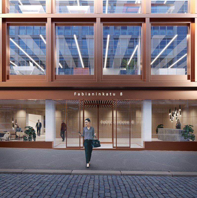 Kasarmitorin ja Esplanadin välissä sijaitseva Fabianinkatu 8 tarjoaa hienot puitteet toiminnalle. Vuokralaisella on myös tarvittaessa mahdollisuus varastotilojen hyödyntämiseen. Kiinteistöltä löytyy lämmin pysäköintihalli ja autonpesupaikka, jotka palvelevat autoilijoita. Pysäköintihalliin voi myös näppärästi jättää polkupyörän työpäivän ajaksi.