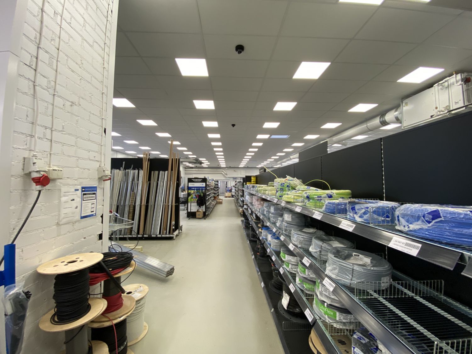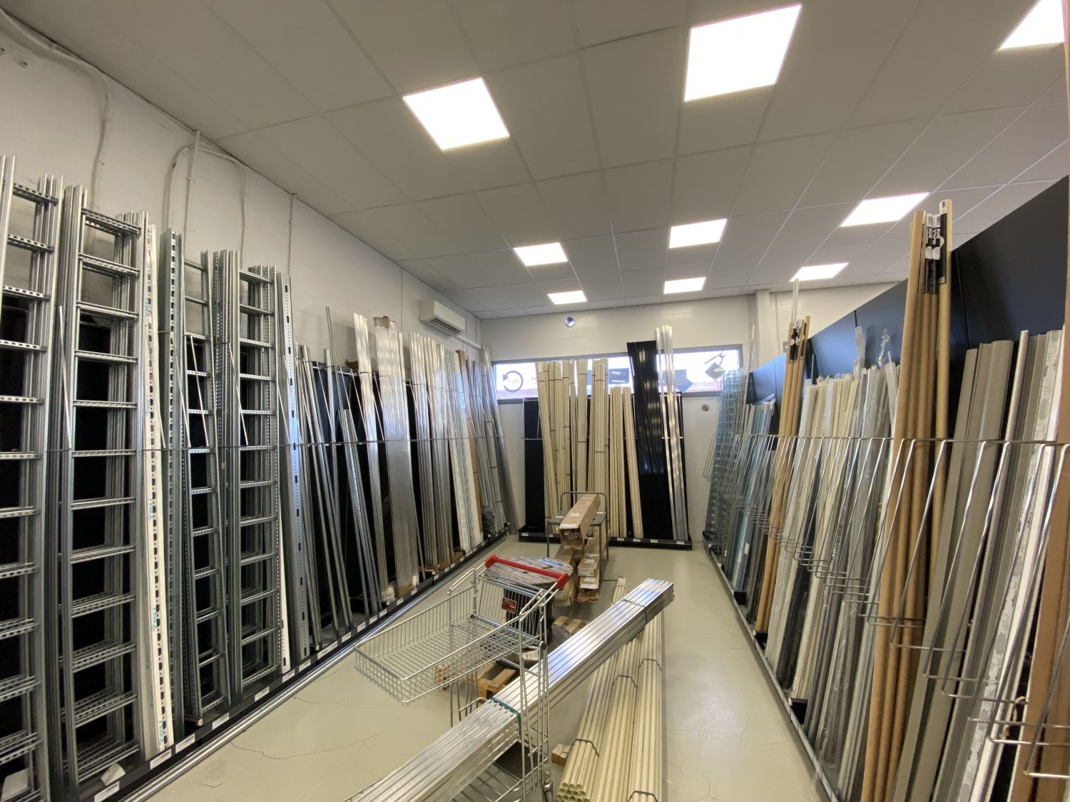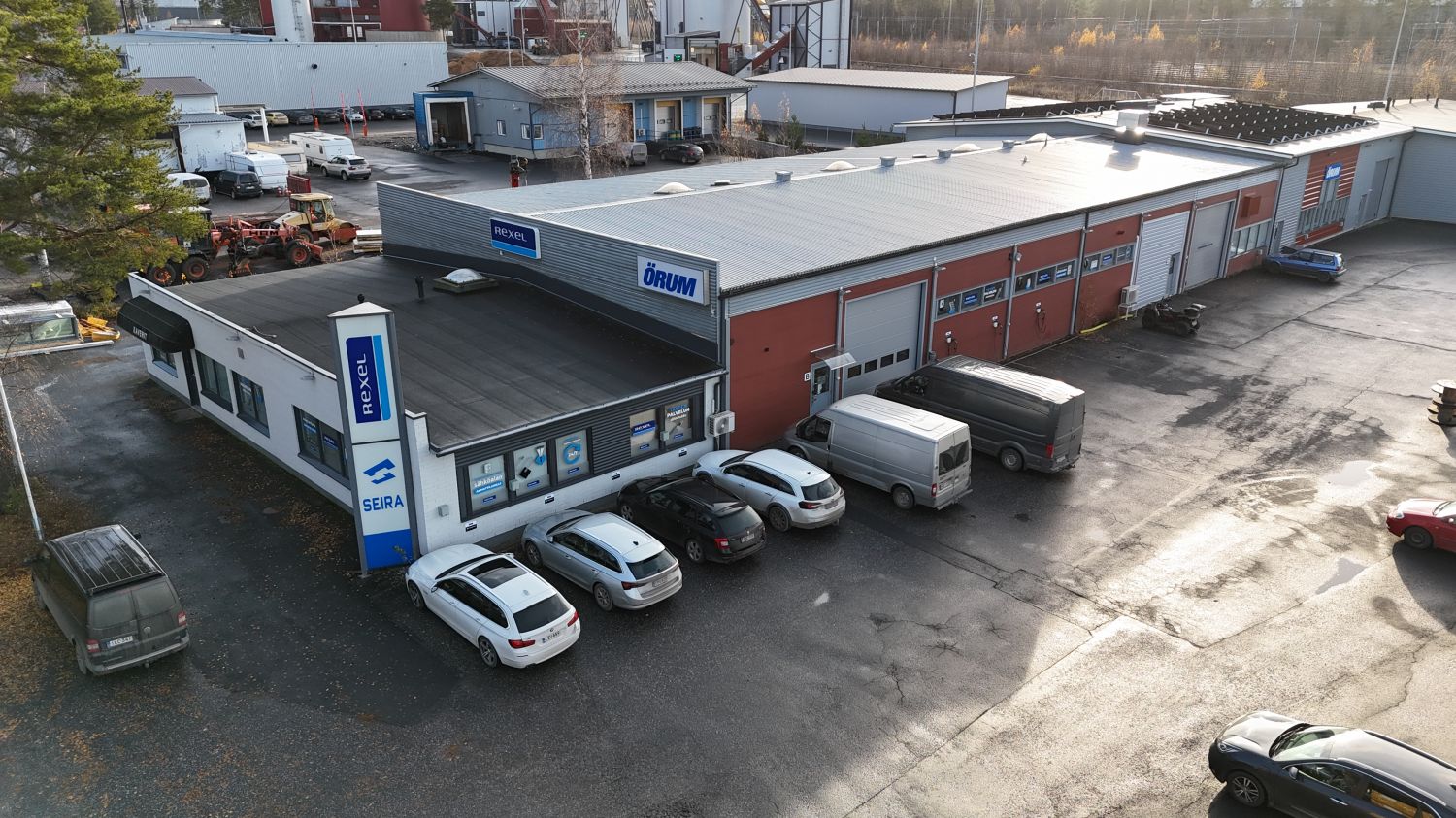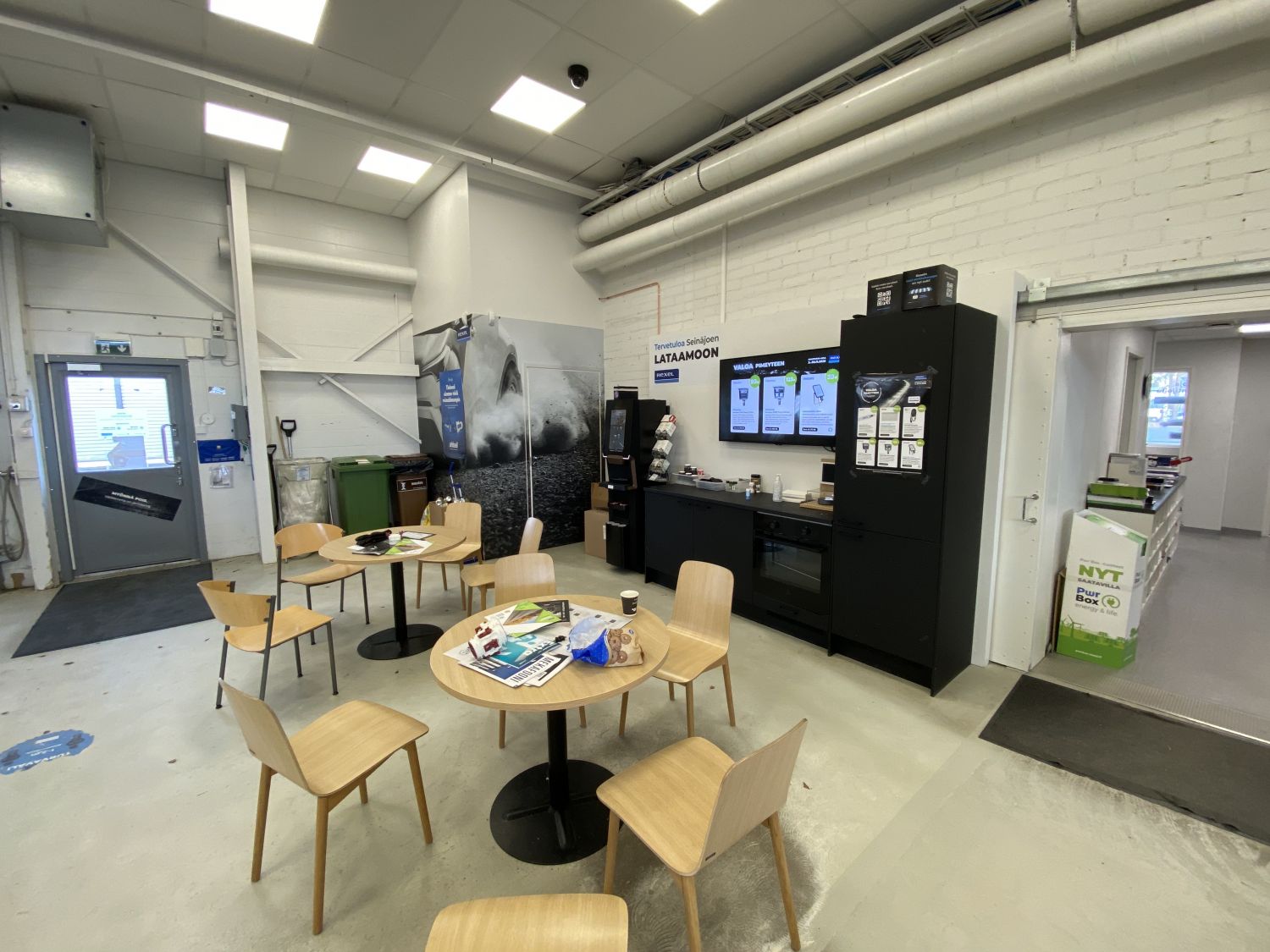 Sisäkorkeus yli 4 metriä. Tässä tilassa on kaksi nosto-ovea (4x4m) ja käyntiovi. Koneellinen ilmanvaihto ja viilennys ilmalämpöpumpulla. Asfaltoitu piha. Myymälässä alaslaskettu katto ja led-paneelivalaistus.