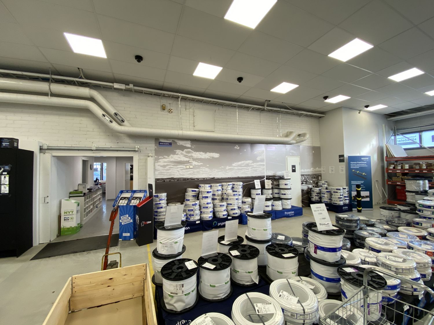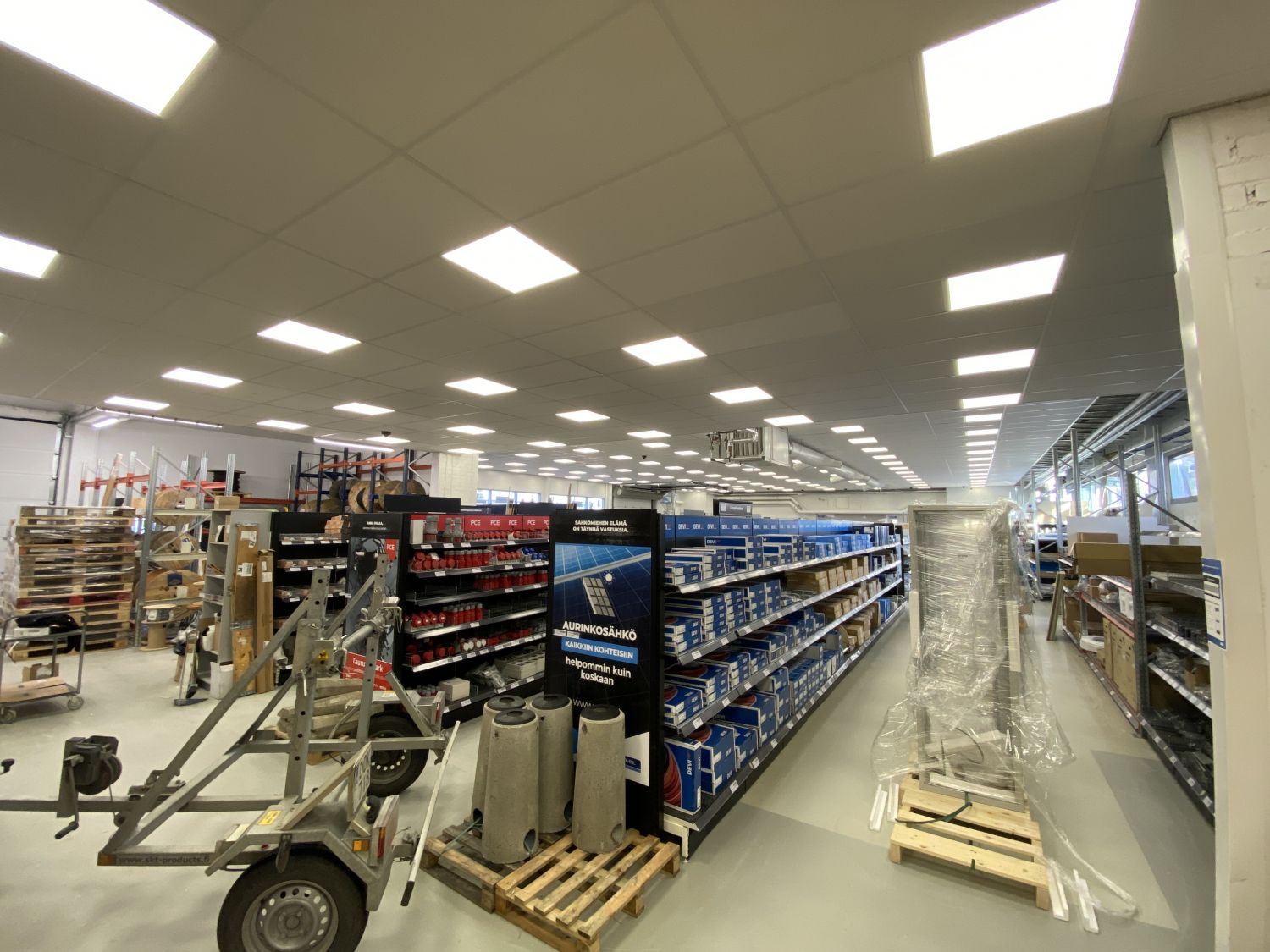 Hyvällä paikalla loistava tila tukkuliikkeelle tai varastomyymälälle. Toimistosiivessä viilennys. Myös varasto-osassa on ilmalämpöpumppu. Koneellinen ilmanvaihto. Vapaa korkeus yli 4 metriä. Tilassa on toiminut tukkuliike vuosikaudet. Hyvät yhteydet joka suuntaan.