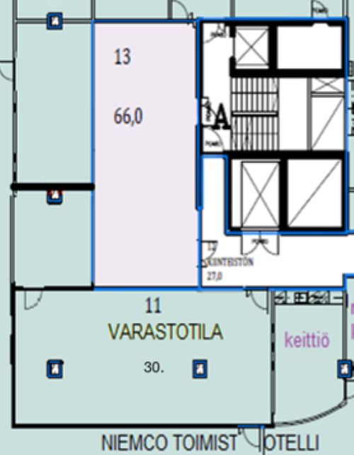 Vuokrattavana 4. kerroksen siistiä varastotilaa, jossa on avotila ja pari työhuonetta. Varastoon on kaksi sisäänkäyntiä. Tavarahissi sijaitsee aivan varaston edessä. Tila on osa toimistohotellista, keittiö ja wc:t ovat yhteiskäytössä.