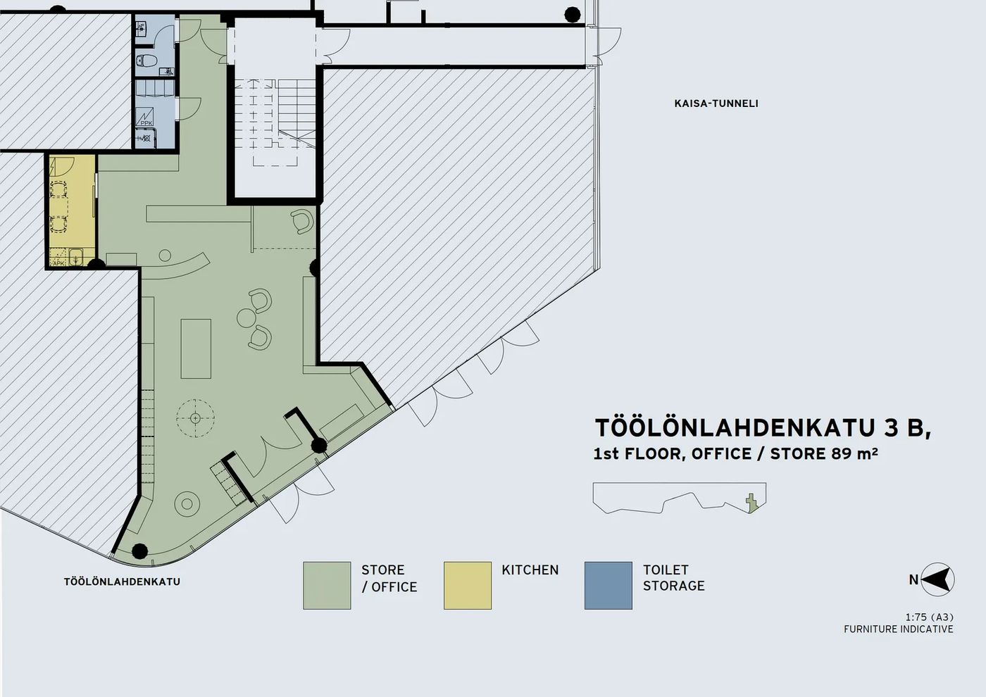 Siisti ja moderni liiketila Centraalin päädystä, Oodia vastapäätä. Loistava sijainti vilkkaalla kauppapaikalla, lyhyen kävelymatkan päässä Helsingin päärautatieasemalta.