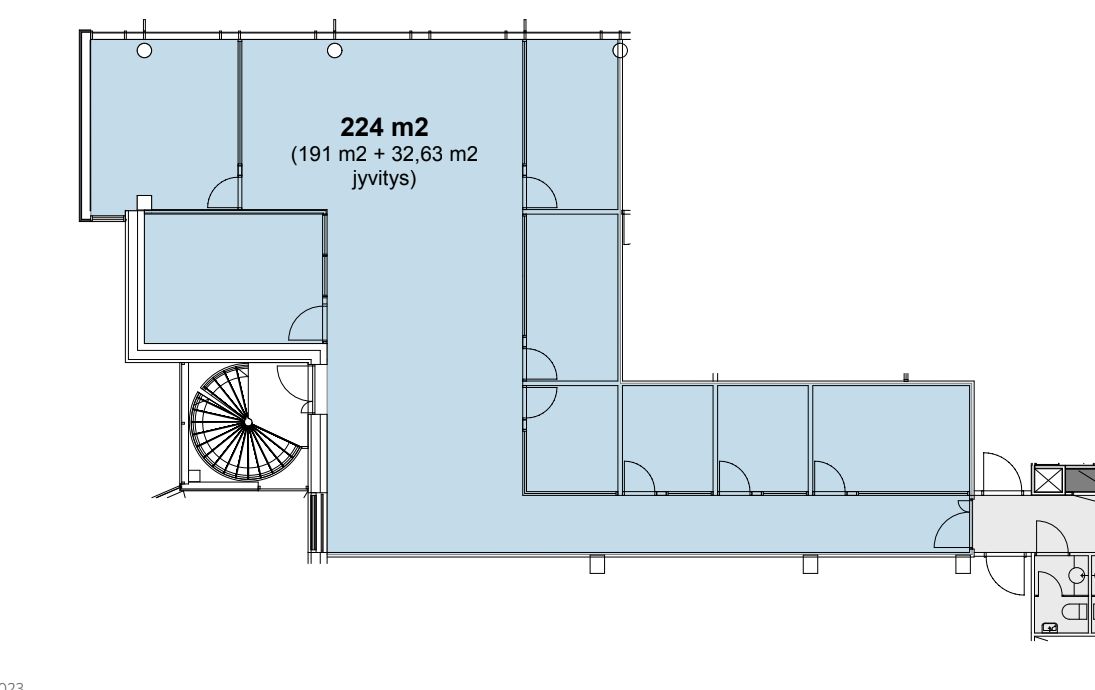 Vuokrattavana toimisto kiinteistön neljännessä kerroksessa, pientoimistoalueella. Tilassa on avotilan lisäksi useampi työhuone. Pientoimistoalueen vuokralisilla on käytössään yhteiskäyttöiset sosiaali- ja taukotilat.