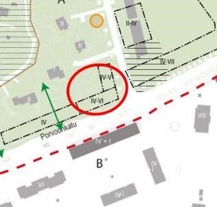 Alueelle suosittaisiin IV-VI kerroksisten kerrostalojen rakentamista ja tämän tontin kohdalla IV - kerroksista.