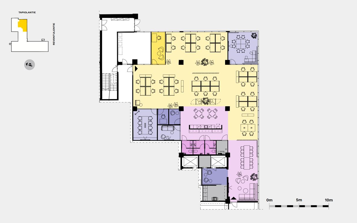 Moderni ja helposti saavutettavissa oleva katutason monitilatoimisto tarjoaa 459 neliömetriä tehokasta työskentelytilaa, jonne saa sijoitettua 37 työpistettä. Tilassa on kaksi neuvotteluhuonetta, kolme vetäytymistilaa sekä viihtyisä cafe/lounge-alue, joka kutsuu rentoutumaan tai työskentelemään rennommin. Ikkunat avautuvat kahteen ilmansuuntaan, tuoden tilaan runsaasti luonnonvaloa. Toimisto remontoidaan käyttäjän tarpeiden mukaan, joten se muuntautuu joustavasti juuri sinun tiimillesi sopivaksi.