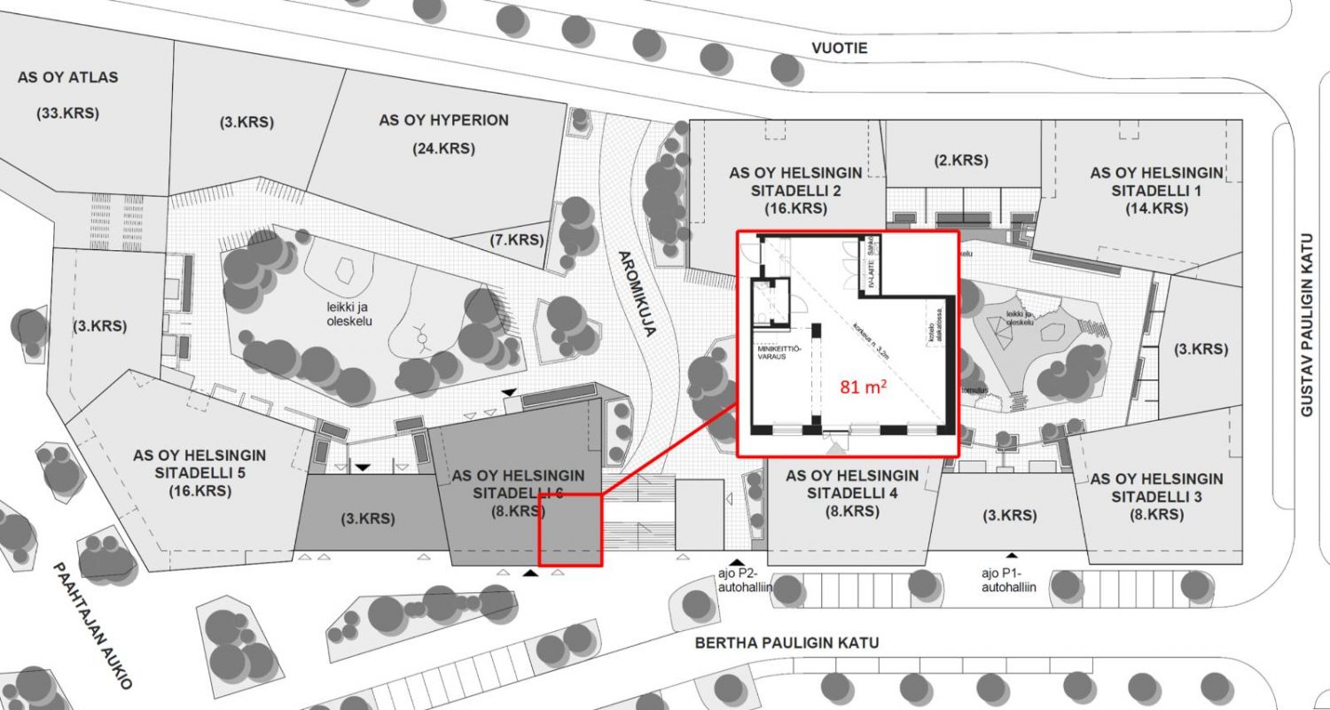 Vuokrataan Helsingin Vuosaaresta katutason 81 m² liiketila, LH 2.