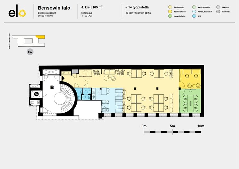 Bensowin talona tunnettu kiinteistö on hyvä valinta, kun etsit arkkitehtuurisesti arvokasta kohdetta yrityksen uudeksi osoitteeksi. Bensowin talo sijaitsee vastapäätä Esplanadin puistoa, ydinkeskustan palveluiden keskellä. Tervetuloa osaksi maineikkaan talon tarinaa.