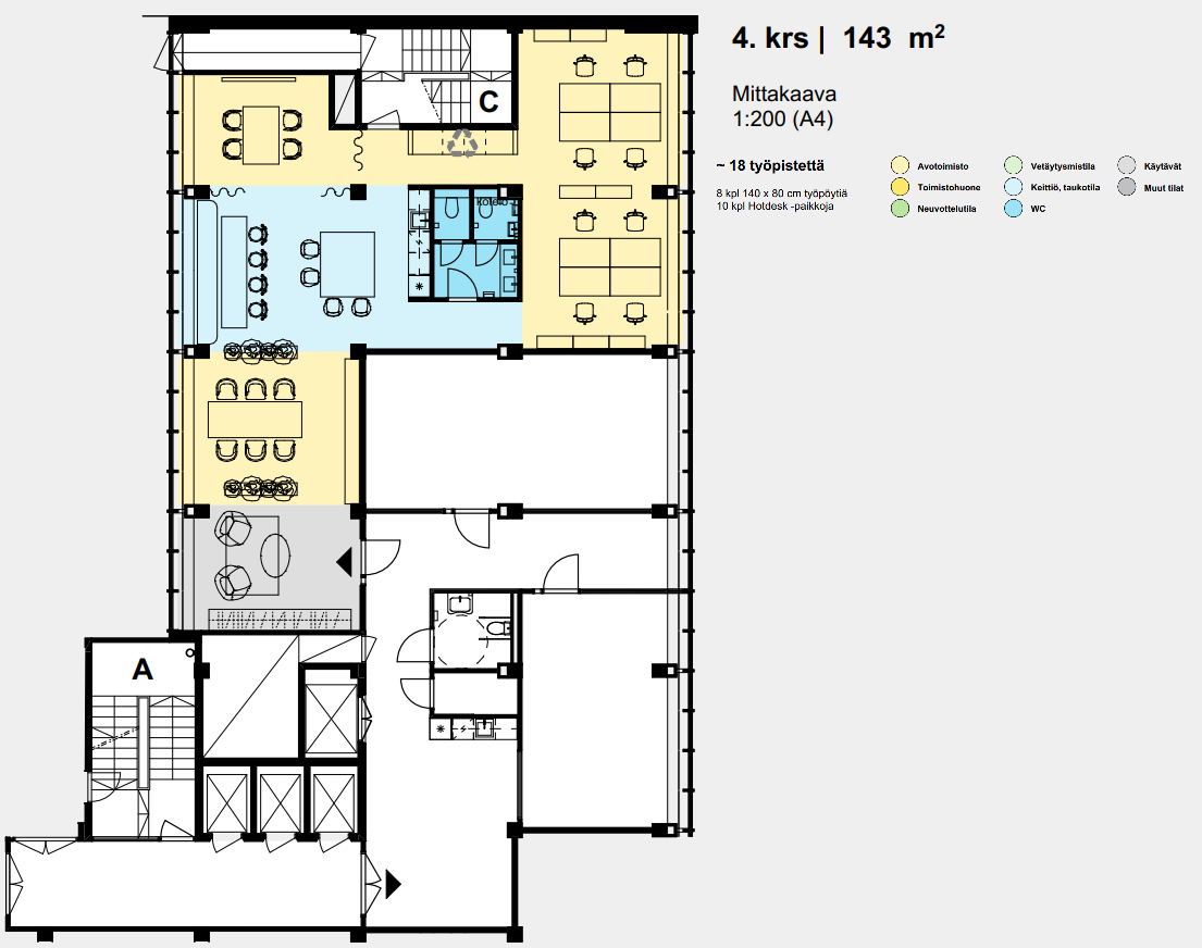 Laadukkaasti remontoitu 4. kerroksen toimitila kahdella erillisellä toimistoalueella.