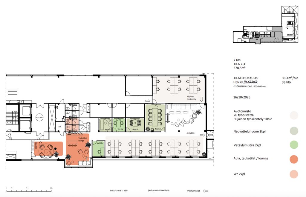 Kiinteistön 7. kerrokseen on valmistumassa 378,5 m² kokoinen Aina Valmis -tila. Toimisto remontoidaan laadukkaita materiaaleja käyttäen. Aina Valmis-toimistotilojen hiilijalanjälki on tehty mahdollisimman pieneksi ja remontit on toteutettu vastuullisesti.