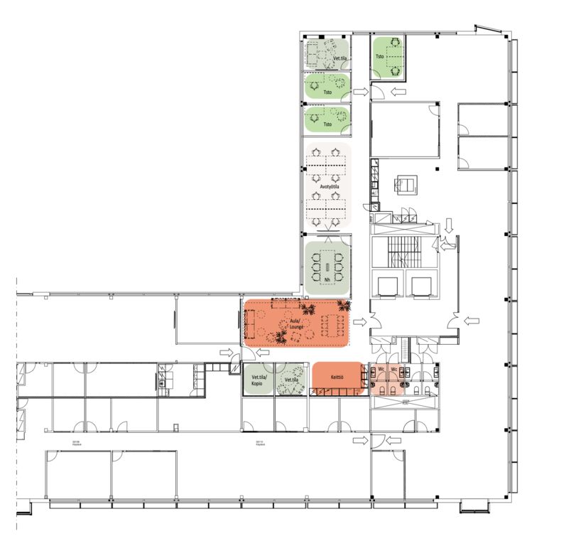Modernia ja muuntojoustavaa toimistotilaa Ruoholahdessa.