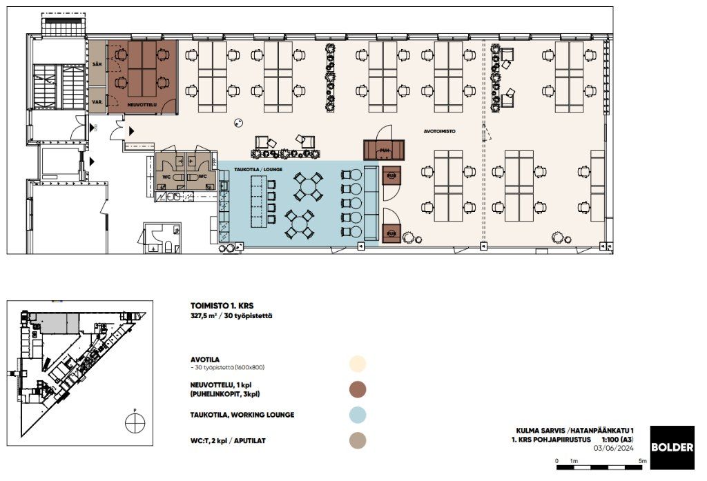 Vuokrattavana 1200 m² toimistotilaa 4. kerroksesta Hatanpään Kulma-Sarviksen toimistokeskuksesta.