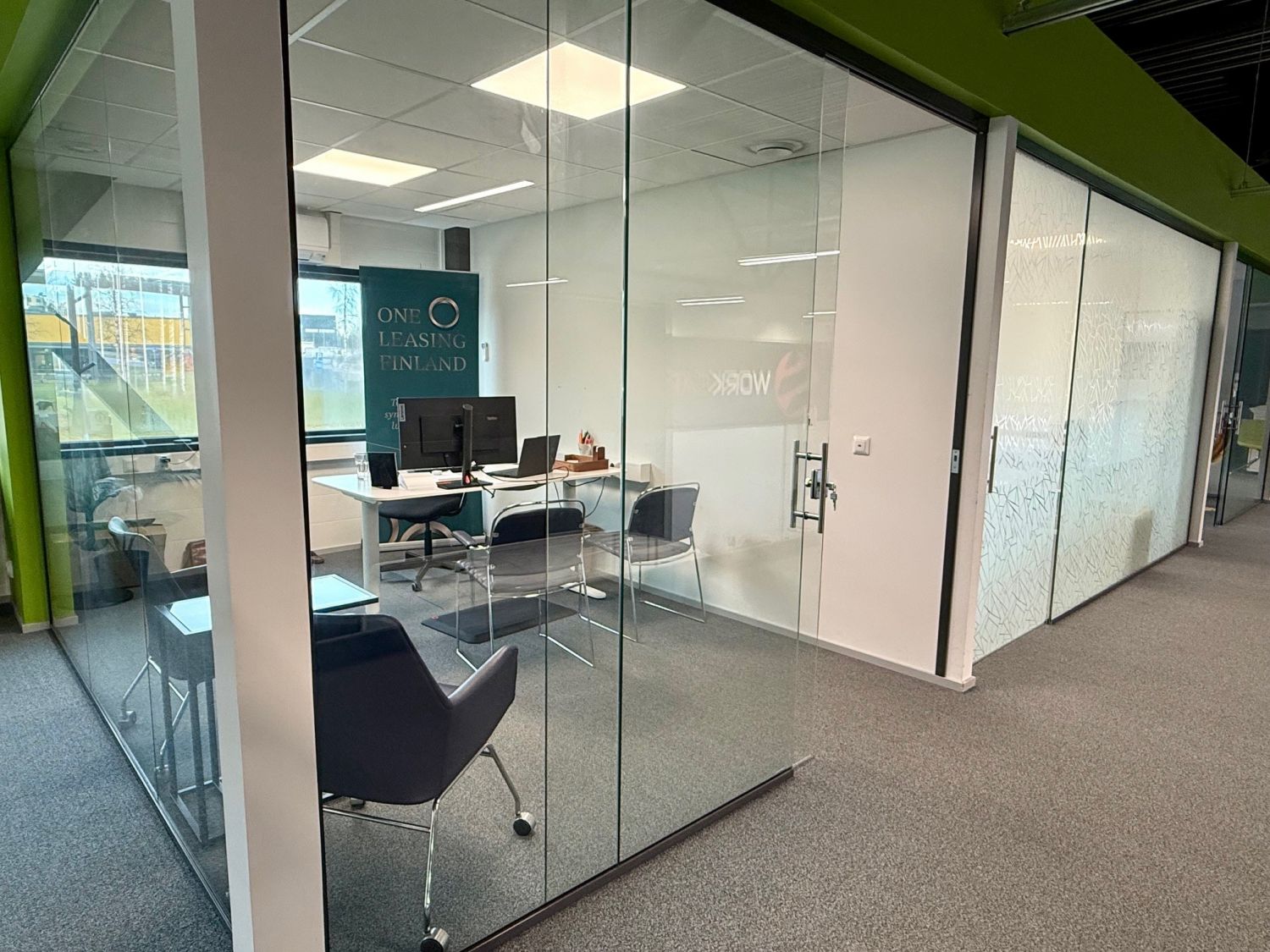 Parvikerroksessa on avoin näkymä alas halliin. Siellä on 4 erikokoista työ-/neuvotteluhuonetta sekä yksi wc.