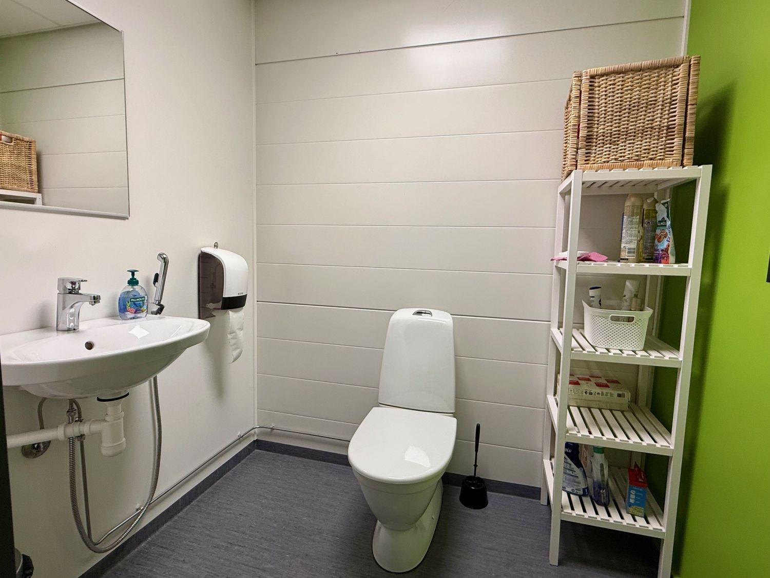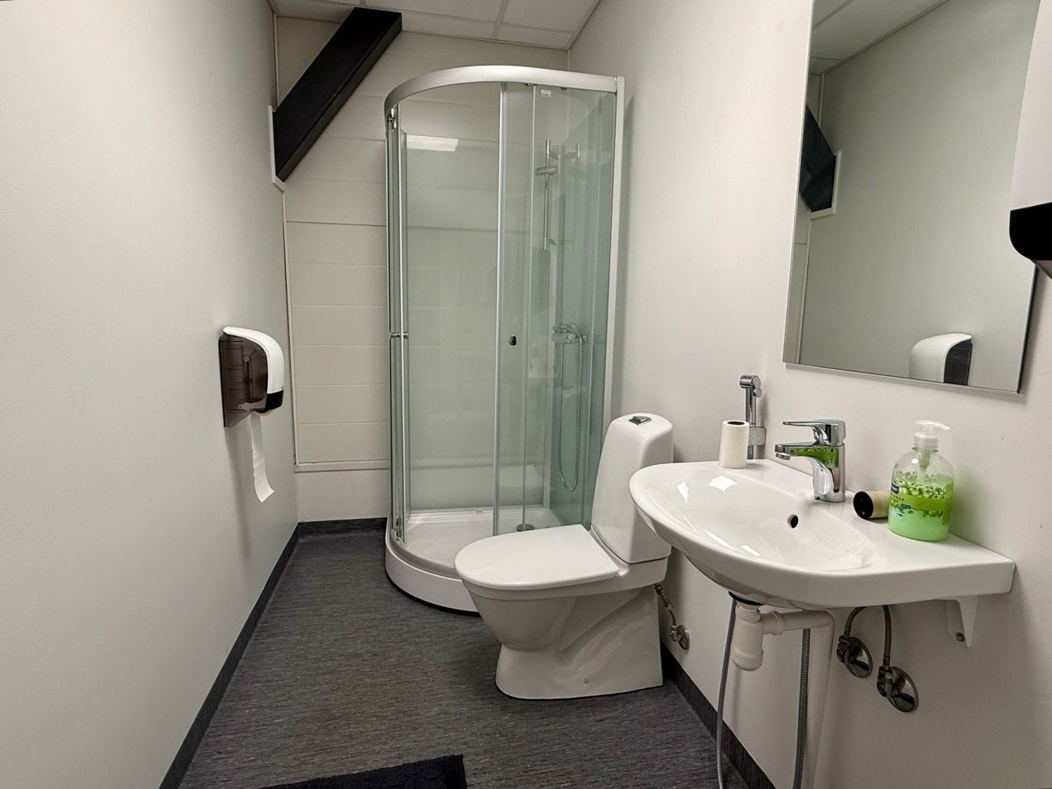 Katutasossa sijaitsee erillinen esim. asiakaskäyttöön soveltuva tilava wc. Lisäksi kolme lasiseinällistä huonetta, keittiö ja pukuhuone jonka yhteydessä on kaksi erillistä wc/suihkutilaa. Huoneita voi poistaa tai muokata käyttäjän tarpeen mukaan.