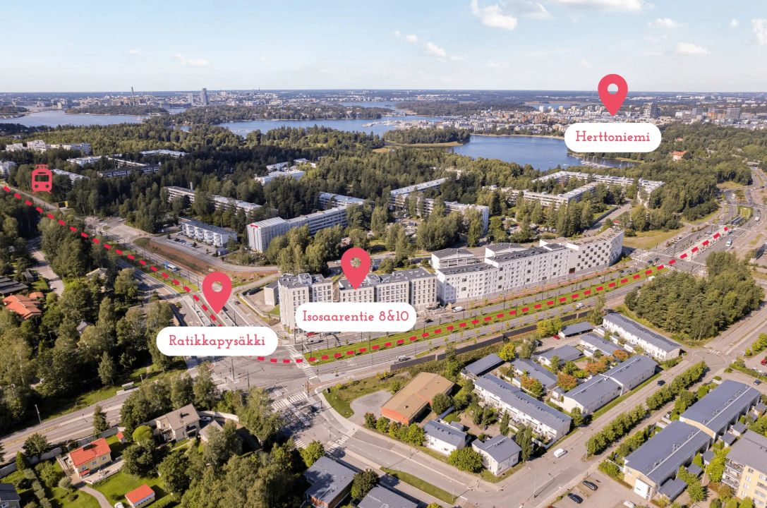 Vehreässä kaupunkiympäristössä sijaitseva uudiskohde Helsingin Laajasalossa. Sijainti aivan tulevan ratikkapysäkin vieressä takaa erinomaiset liikenneyhteydet ja helpon saavutettavuuden. Täällä yhdistyvät mukavuus, luonnon rauha ja sujuva arki.
