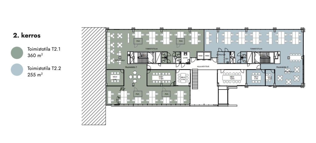 Tämä 360 m² toimistotila sijaitsee kiinteistön 2. kerroksessa.