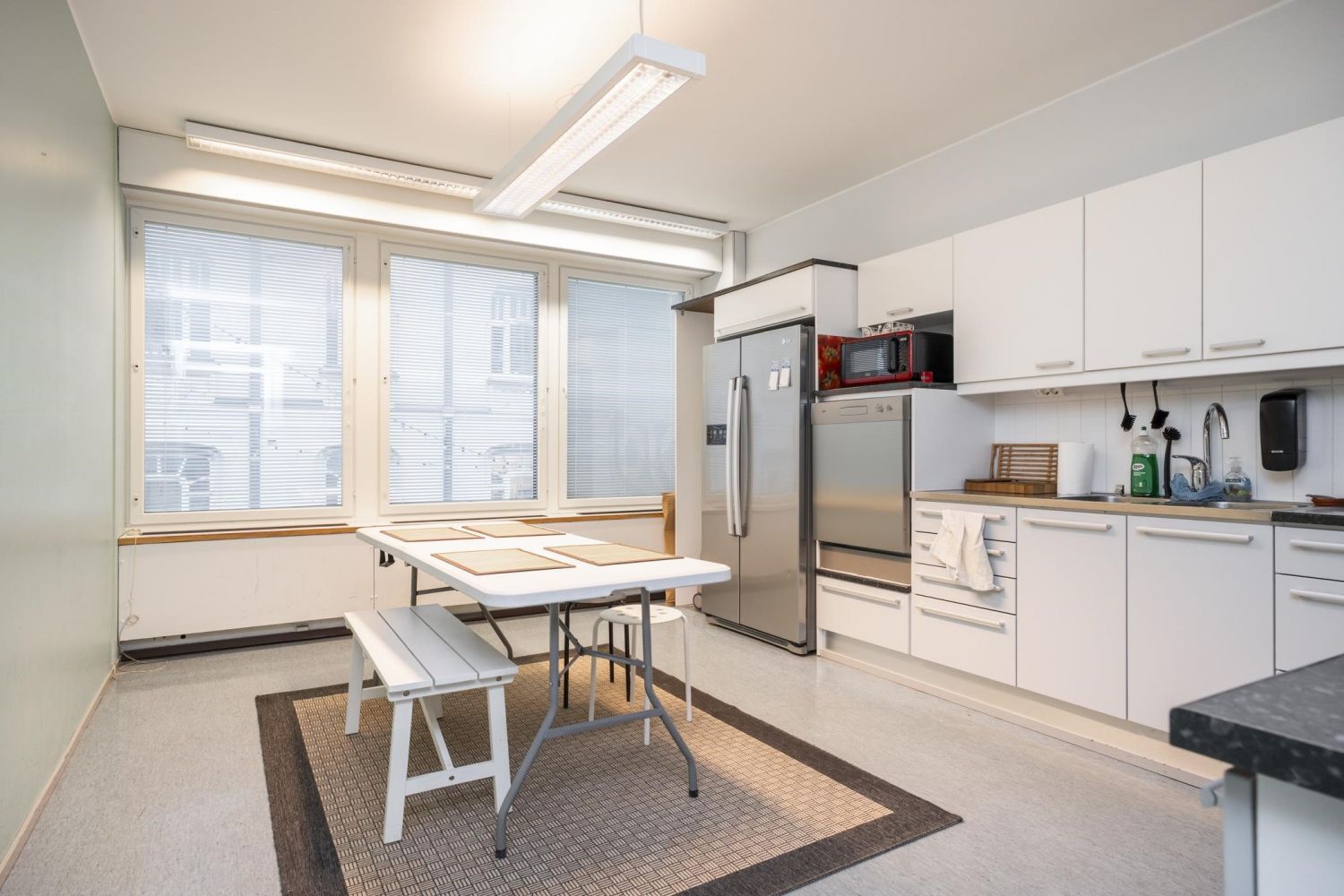 Tila koostuu isommista ja pienemmistä toimistohuoneista, aulasta, keittiöstä, vessoista ja varastosta. Vuokranantaja on valmis suorittamaan tilassa muutostöitä vuokralaisen tarpeen mukaan. Tilaan on asennettu viilennyslaitteita. Yhtiössä on kaksi asiakashissiä, käynti tiloihin kauppahallin korttelikäytävän kautta Keskustorilta.