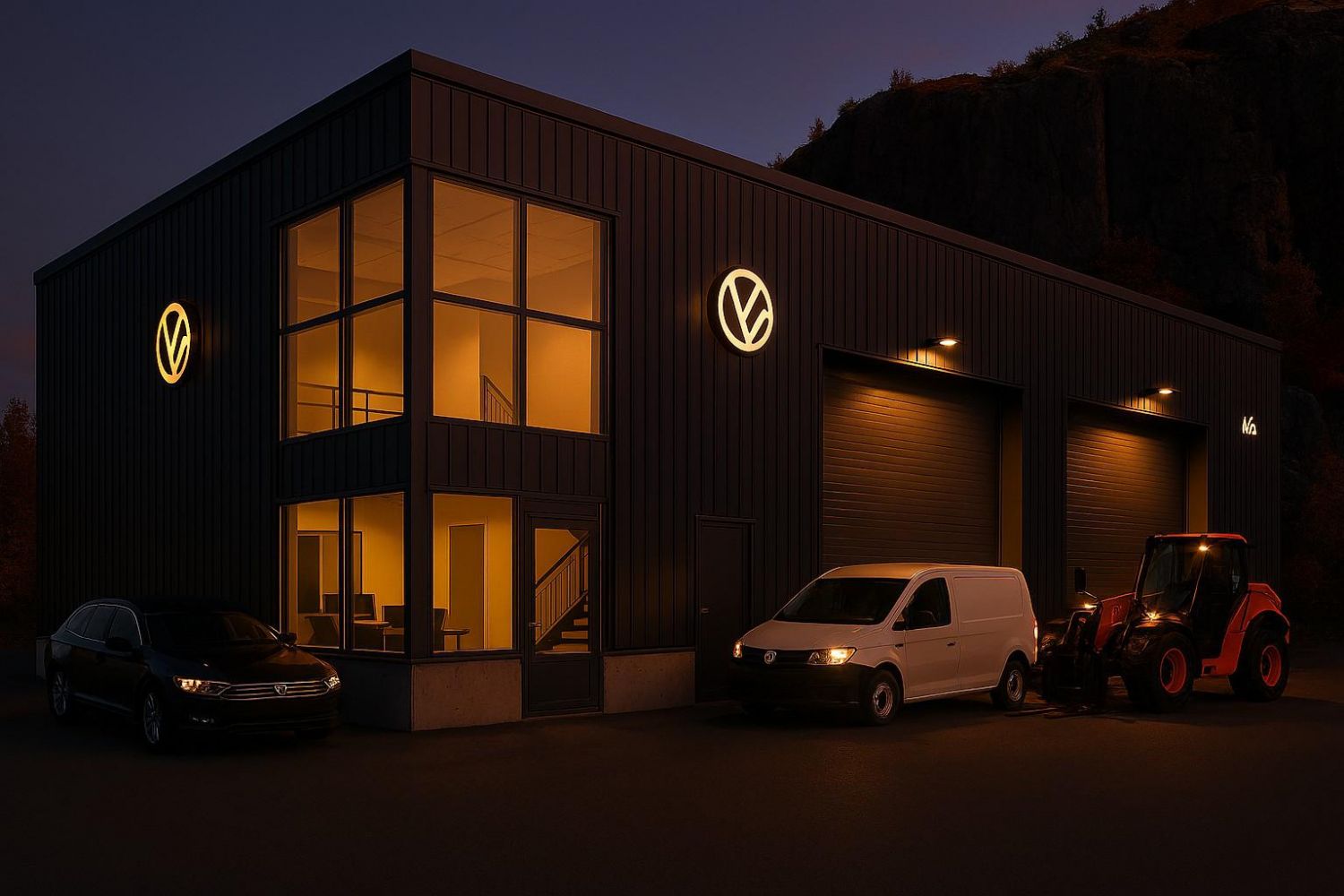 Uudiskohteen suunnittelussa on perusajatuksena ollut se, että kokonaisuus on julkisivultaan tyylikäs ja sisäpuolella voidaan myös työskennellä hieman rouheamilla ja raskaammilla työkaluilla ja kalustoilla. Tilat on mahdollista jakaa kahdelle eri yritykselle, jolloin kokonaisuus saadaan hyvinkin natsaamaan.