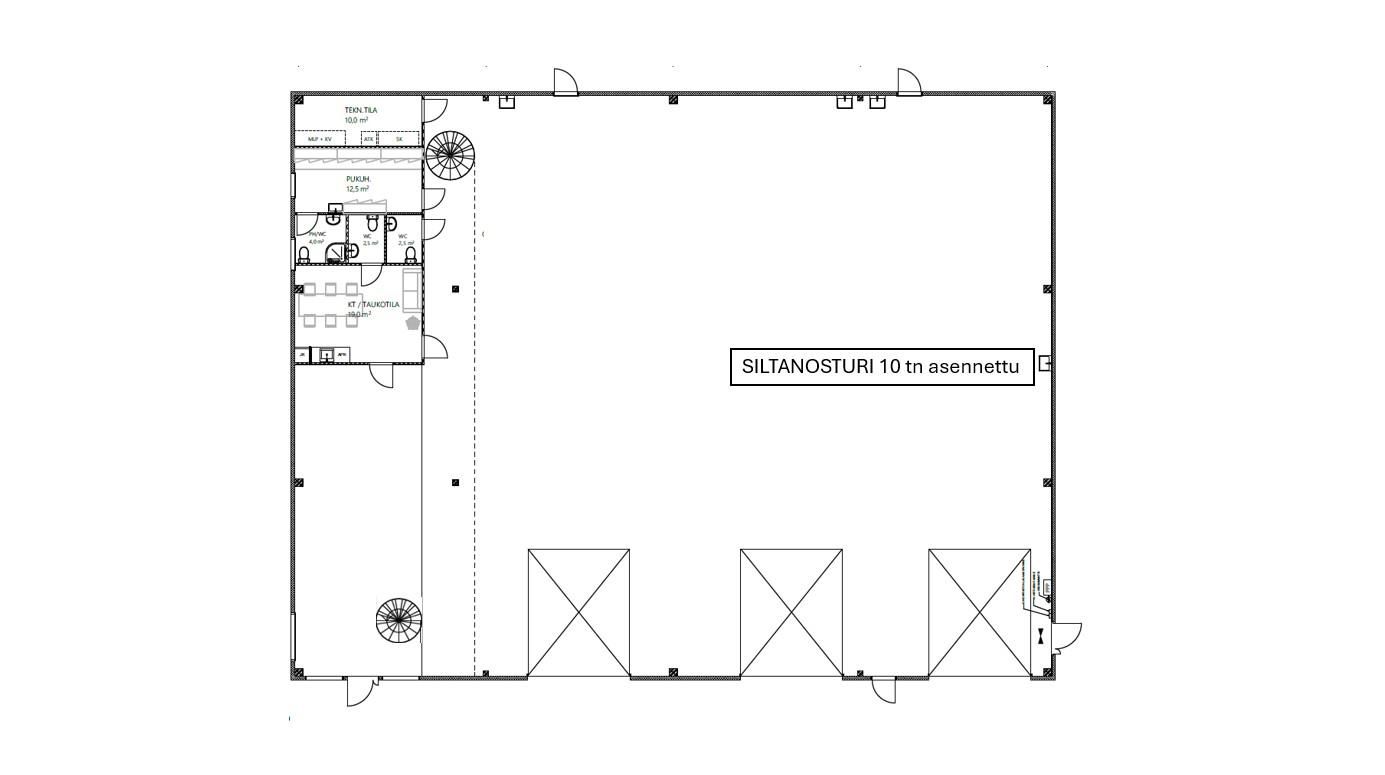 Kiinteistö sopii erinomaisesti mm. tekniselle kaupalle, konekaupalle, huolto- ja konekorjaamolle, asennuspalveluihin, raskaammalle kalustolle eli sellaiselle toimijalle, joka osaa arvostaa seuraavia ominaisuuksia kiinteistöllä ja hallitiloissa: