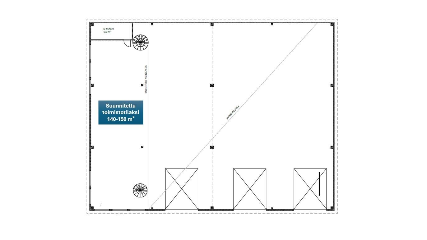 Toimistotilaa tarvittaessa 50-100 m² parvella eteläpäätyyn: