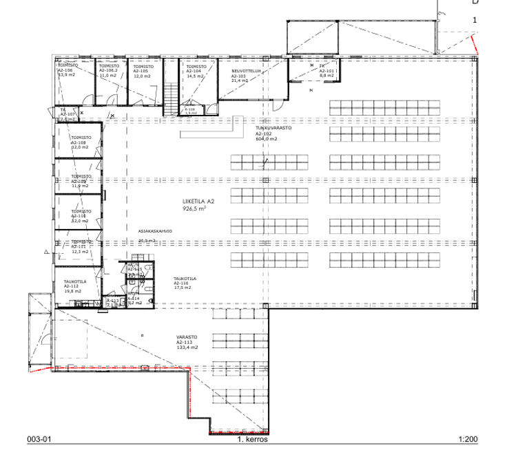 Vuokrataan n. 923n m2 toimitilaa erinomaiselta paikalta Seppälästä Gummerus-talosta. Tila soveltuu esimerkiksi myymälä ja varastokäyttöön, ja aiemmin tiloissa on toiminut B2B-tukkumyymälä. Tila koostuu avoimesta myymälätilasta ja toimistohuoneista (ks. pohjakuva). Lisäksi WC- ja taukotilat. Vuokralaisten käytössä on lisäksi yhteiskäyttöiset sosiaalitilat sekä neuvotteluhuone. Tilaan on myös maatason nosto-ovi.