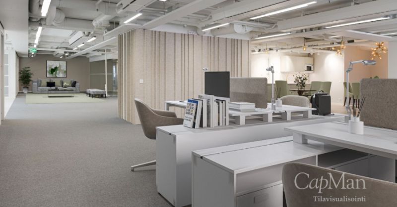Vuokrataan 6. kerroksen muuntokelpoista toimistotilaa vain vajaan kilometrin päästä Pasilan juna-asemasta. Tilan kuvat ovat visualisointeja. Kerroksiin on tavarahissiyhteys (1500 kg). Ota yhteyttä ja sovi esittely, vuokrauspalvelumme on tilanhakijoille maksuton.