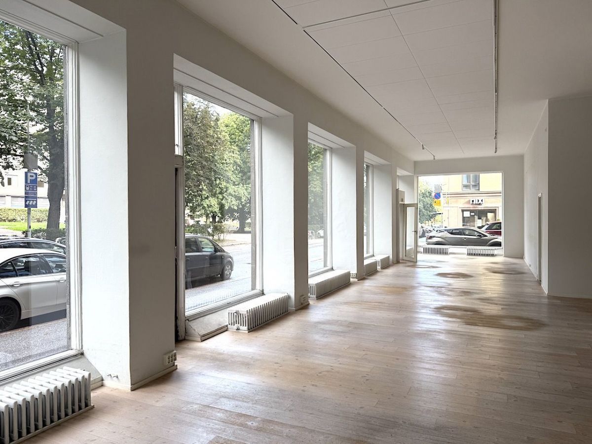 Vuokrataan valoisa ja viihtyisä liiketila Töölöstä. Tila soveltuu hyvin myös toimistoksi, isot näyteikkunat kadulle ja vehreään Hesperian puistoon. Avarassa tilassa on neuvotteluhuone, sekä pienempi vetäytymistila, keittiö ja kaksi wc:tä. Alakerrassa on vielä pieni varasto. Tilaan on kaksi sisäänkäyntiä kadulta.