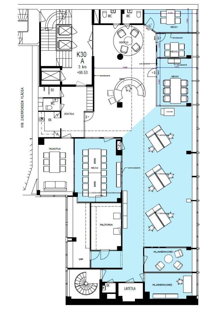 Vuokrattavana edustava toimistotila Tampereen ydinkeskustasta osoitteessa Kuninkaankatu 30 A. Tila sijaitsee kiinteistön kolmannessa kerroksessa ja tarjoaa 318,5 m² toimivaa toimistopinta-alaa.