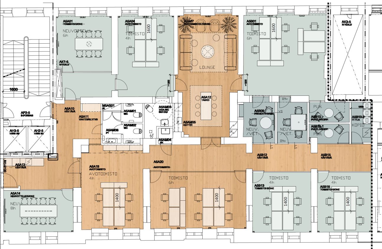 Vuokrattavana 5. kerroksen laadukasta, valoisaa toimistotilaa.
